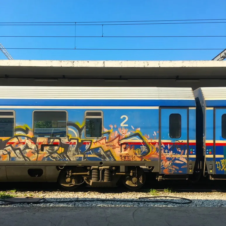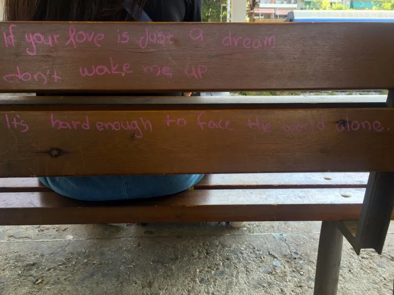 테살로니키 기차역 의자의 낙서.
