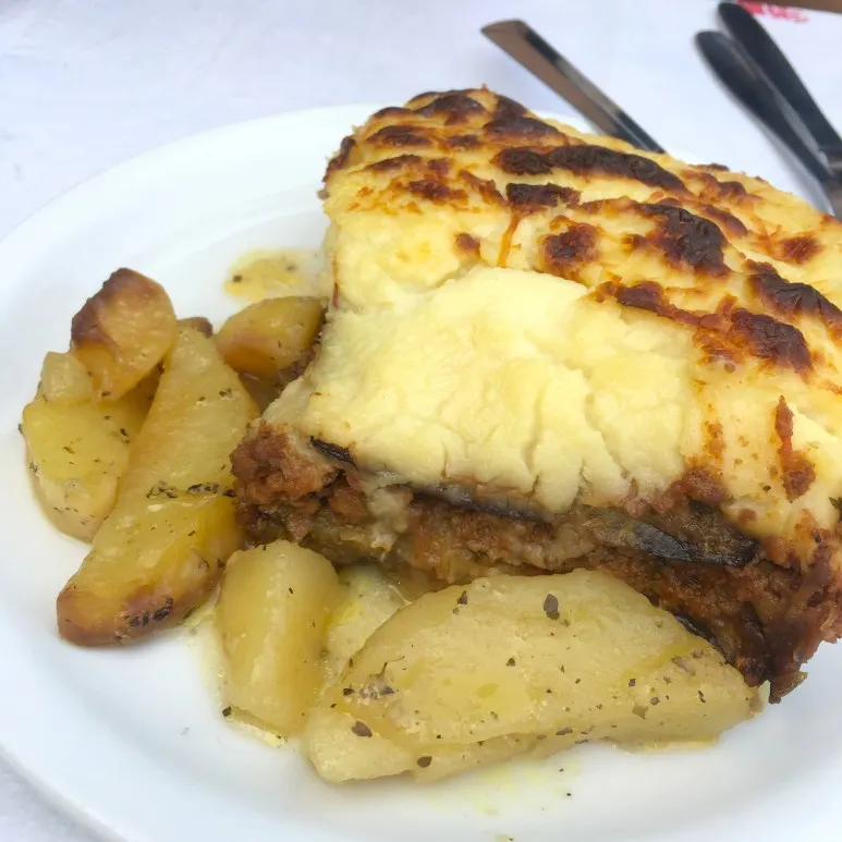 테살로니키 식당에서는 메뉴에 매쉬드 포테이토가 곁들여 진 게 많았는데, 여기는 찐감자를 썰어주는 게 많다.