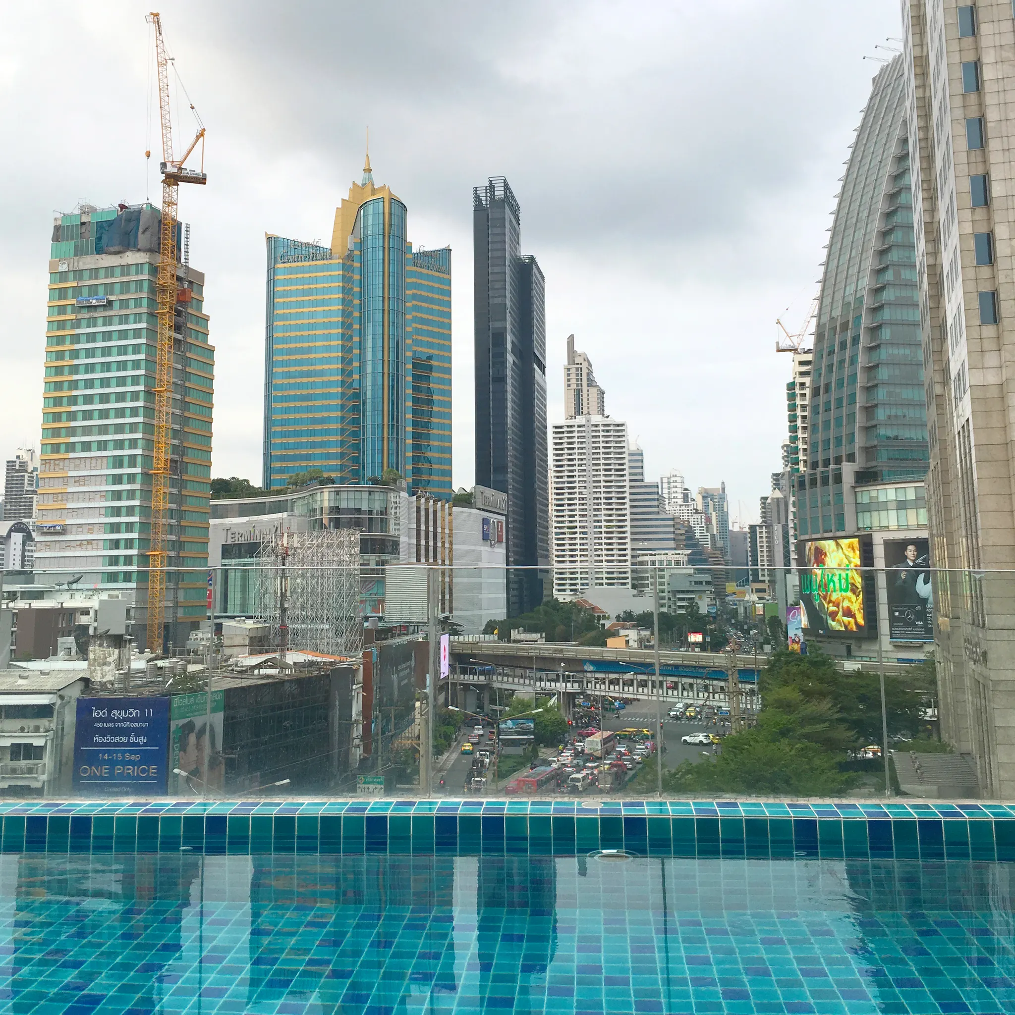 호텔은 아속 클로버 호텔 Hotel Clover Asoke으로, 지하철 아속역 Asok Station, 수쿰빗역 Sukhumvit Station에서 접근성 최고였다. 심지어 쇼핑몰인 터미널 21 Terminal 21 바로 근처인 정말 완전 딱 번화가에 위치한 호텔. 하지만 그렇기 때문에 사실 수영장 뷰는 근사하지는 않을지도! 심지어 공사중인걸..?