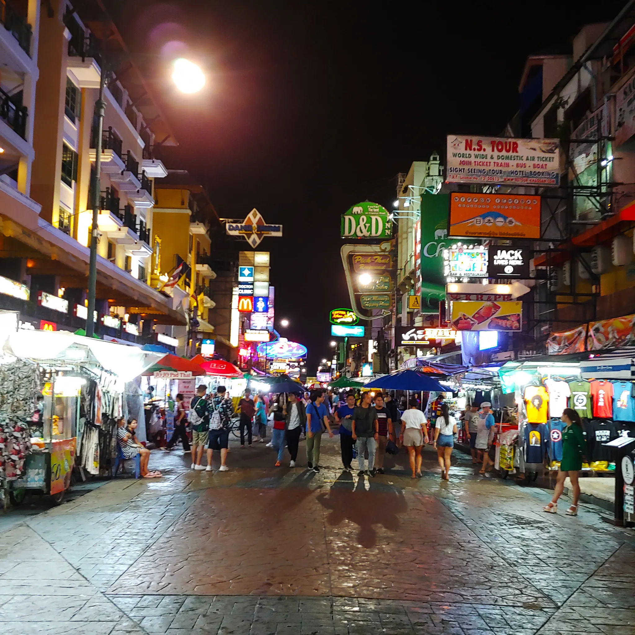 약간의 비가 와서 더 예쁜 카오산로드의 밤. 중국어 간판 때문인지 꼭 빈티지 홍콩 느낌이 난다.
