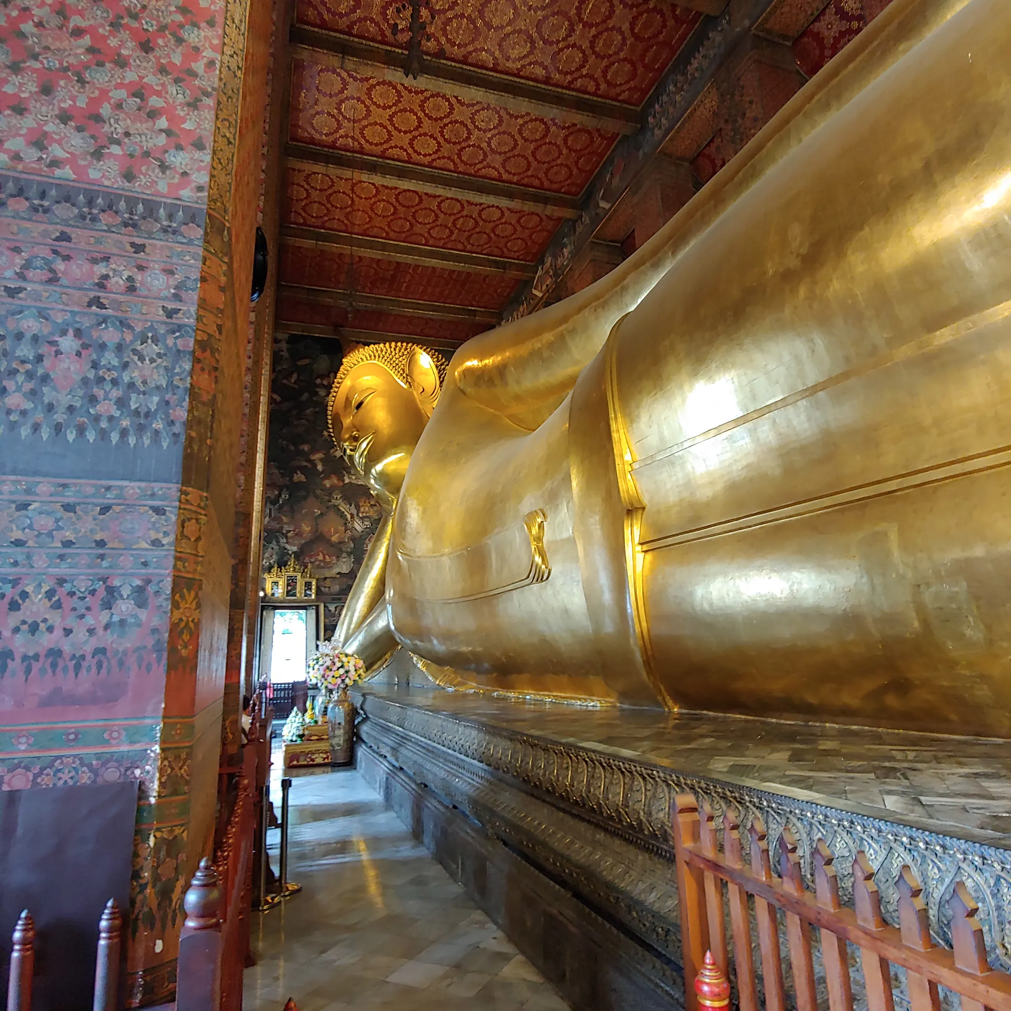 첫 목적지는 불교 사원인 왓 포 Wat pho 사원으로, 정식 이름은 왓 프라 체투폰 위몬 망클라람 랏차워람아하위한 (วัดพระเชตุพนวิมลมังคลารามราชวรมหาวิหาร)이나 줄여서 왓 포라고 불린다. 아유타야 양식으로 지은 방콕에서 가장 오래된 사원인 동시에(무려 16세기에 지어짐) 최대 규모의 사원이다. 왓 포는 태국 최대 규모의 불교 미술품이 소장되어 있는 곳일 뿐만 아니라 태국에서 가장 오래된 공공 교육기관이며, 전통 타이 마사지가 시작된 곳이다. 왓 포에 있는 불상이나 불화 등 불교 미술품들, 각종 경전들이 유네스코 세계기록유산으로 지정되어있다고 하니 역사성이나 문화재로써의 가치도 훌륭한 듯.