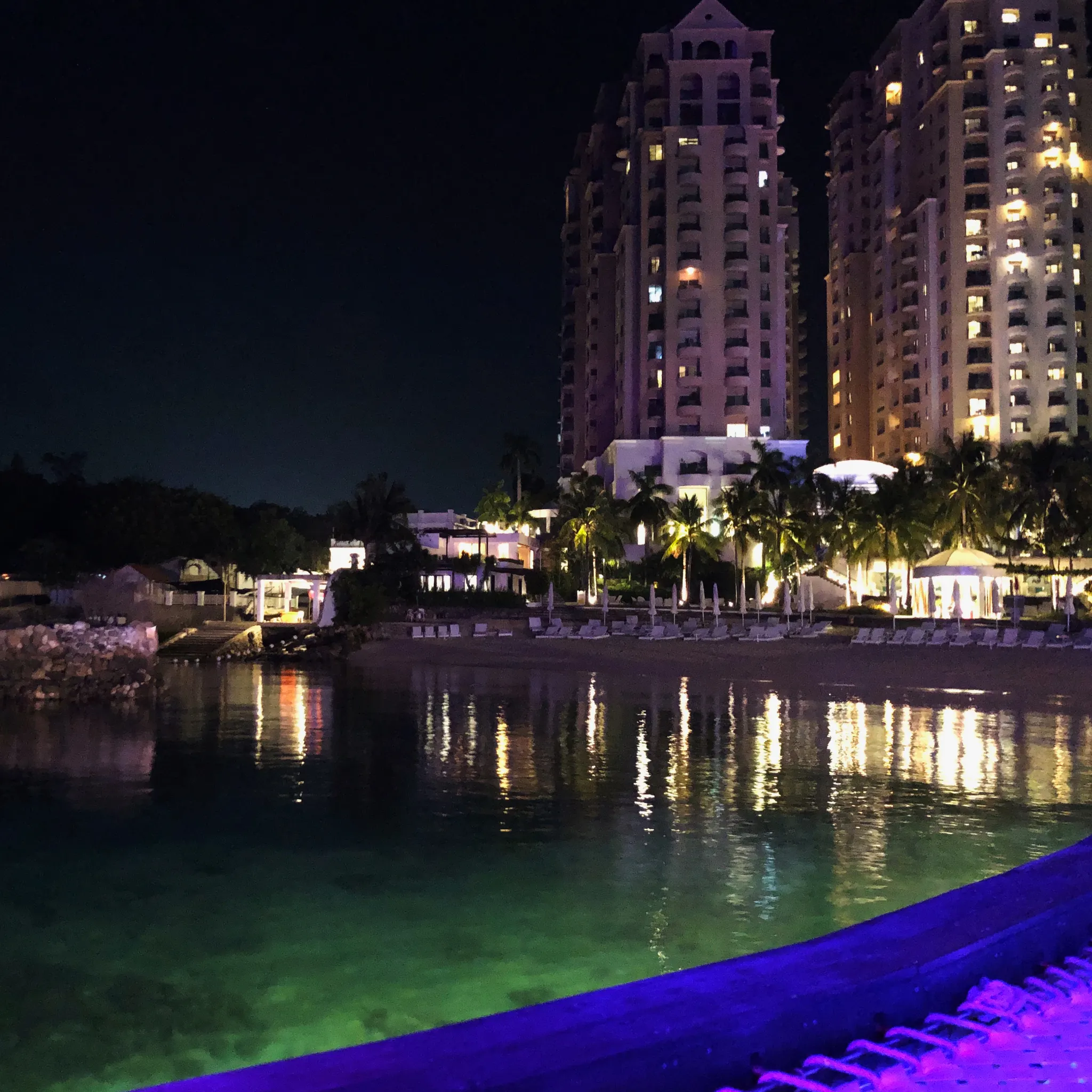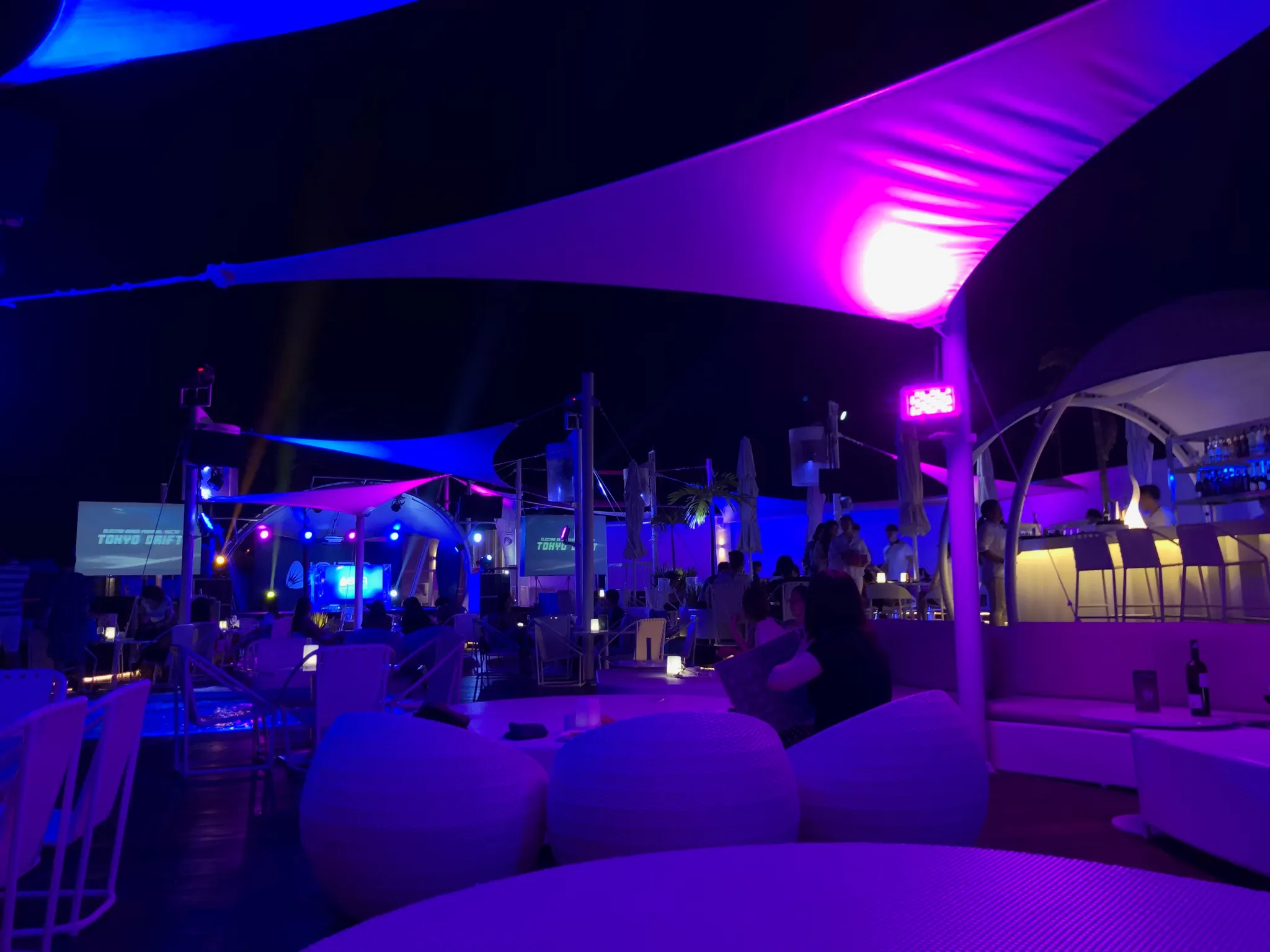 이비자 비치 클럽에서 바라본 모벤픽 호텔의 야경.