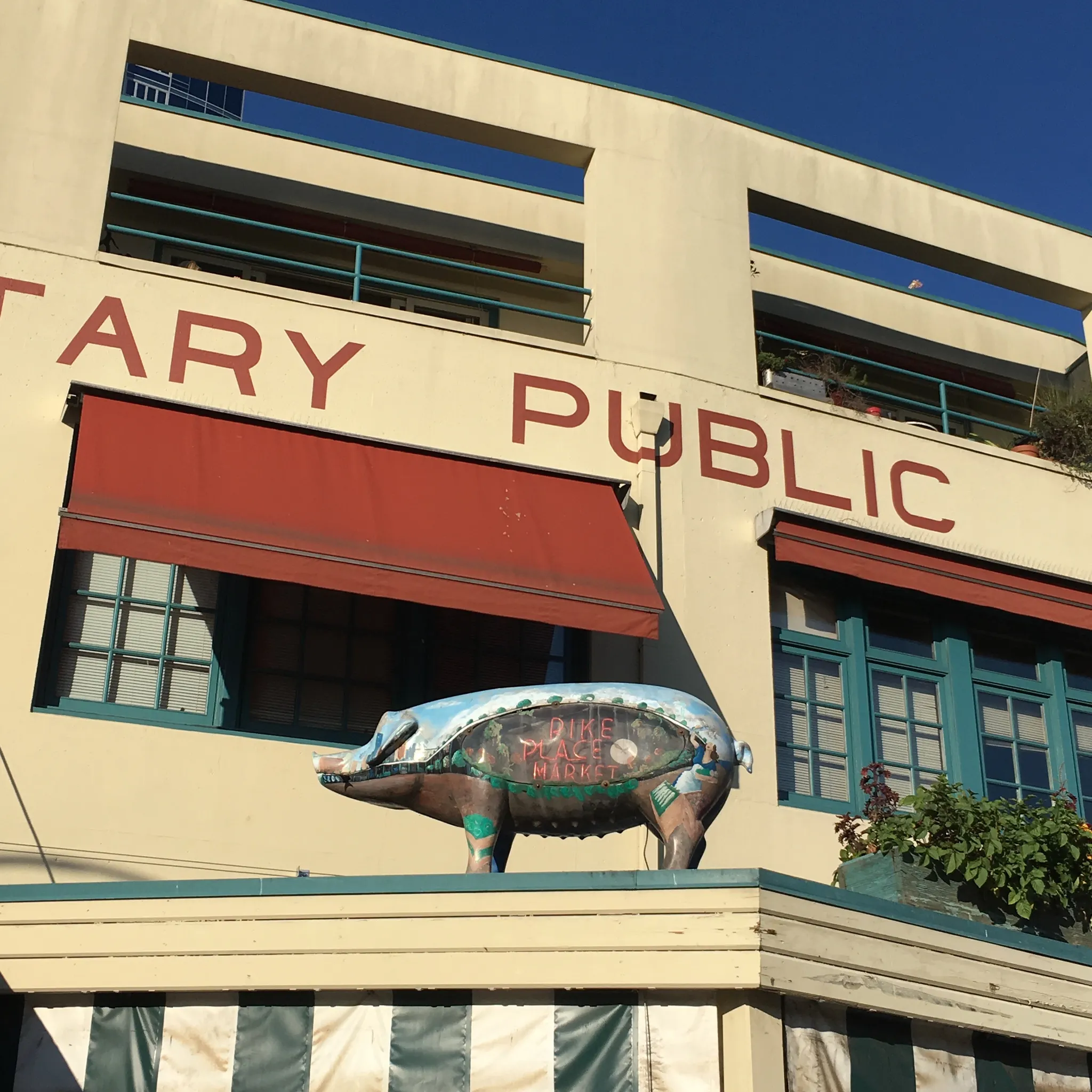 물고기 등에 써있는 것들, 대체 뭐지?했는데 파이크 플레이스 마켓에 입점해있는 가게들인 듯.