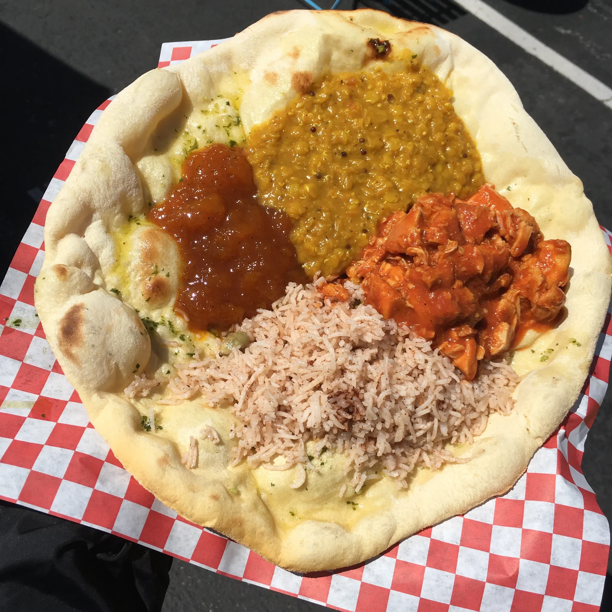 여러 메뉴 중 다 궁금하다 싶어서 위의 사진, Everything을 시켰다. 손바닥 두 개 합친 것보다 더 큰 난 위에 세 가지 종류의 커리와 밥을 올려주는데, 양이 은근히 많아 둘이 먹기에 괜찮았다. (둘 다 입짧음)