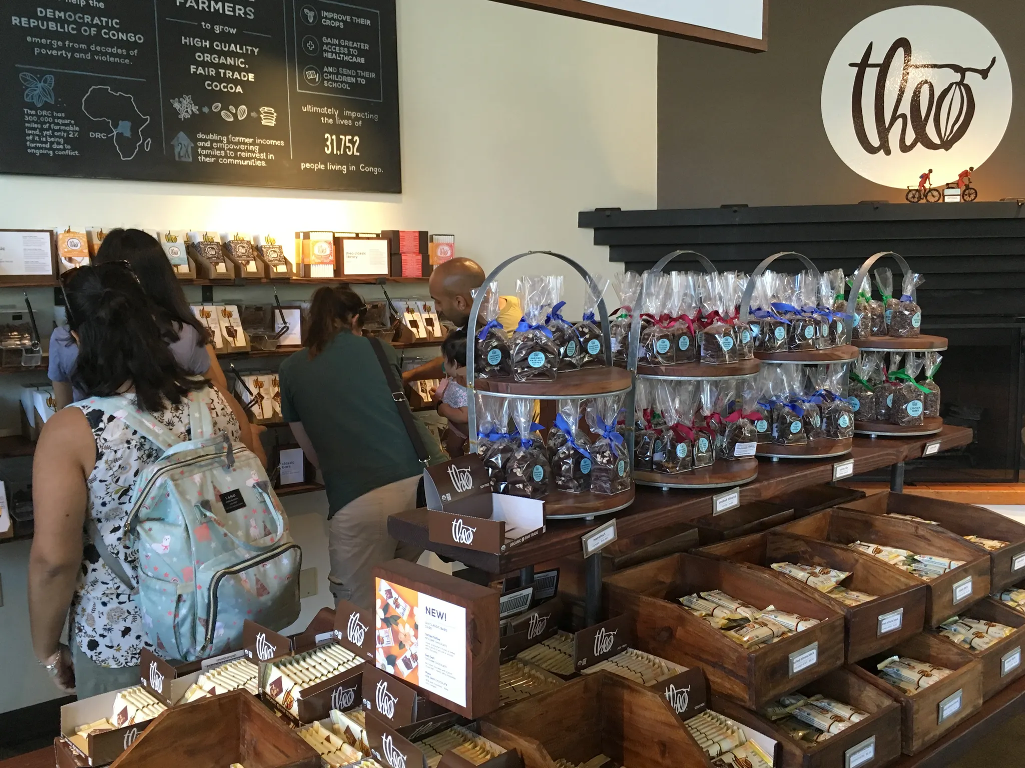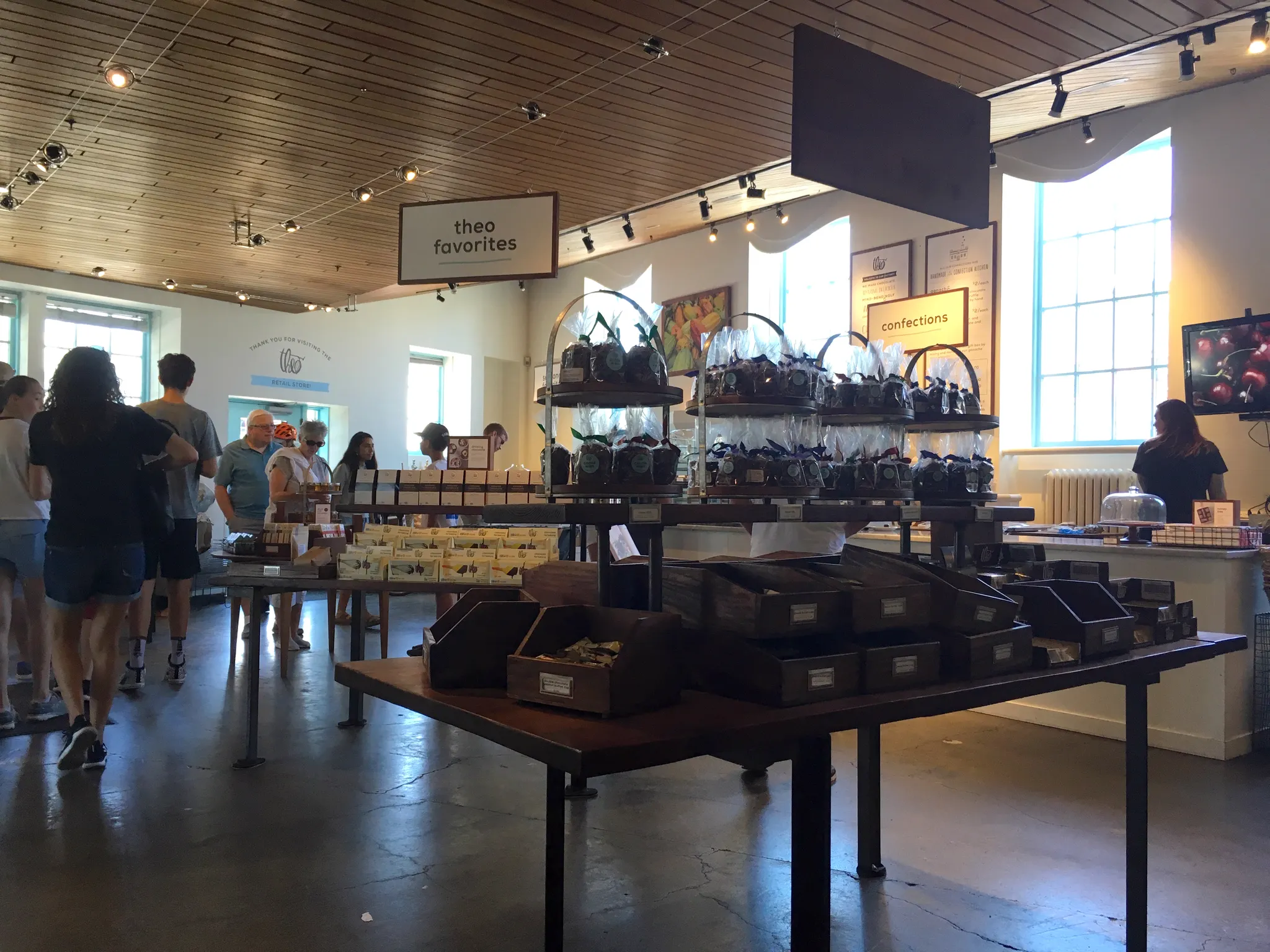 마켓의 끝 쪽에 있는 초콜릿 가게, 테오 초콜릿 Theo Chocolate.