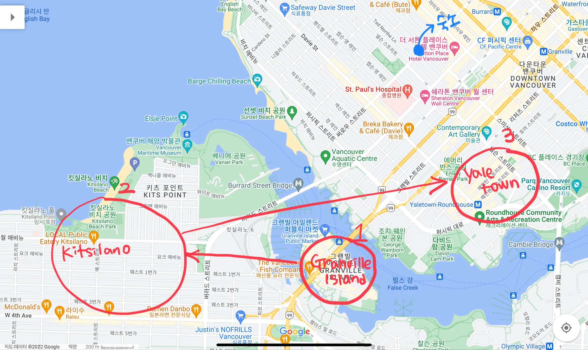 실컷 구경하고나서 다음으로 간 곳은 키칠라노 Kitsilano.