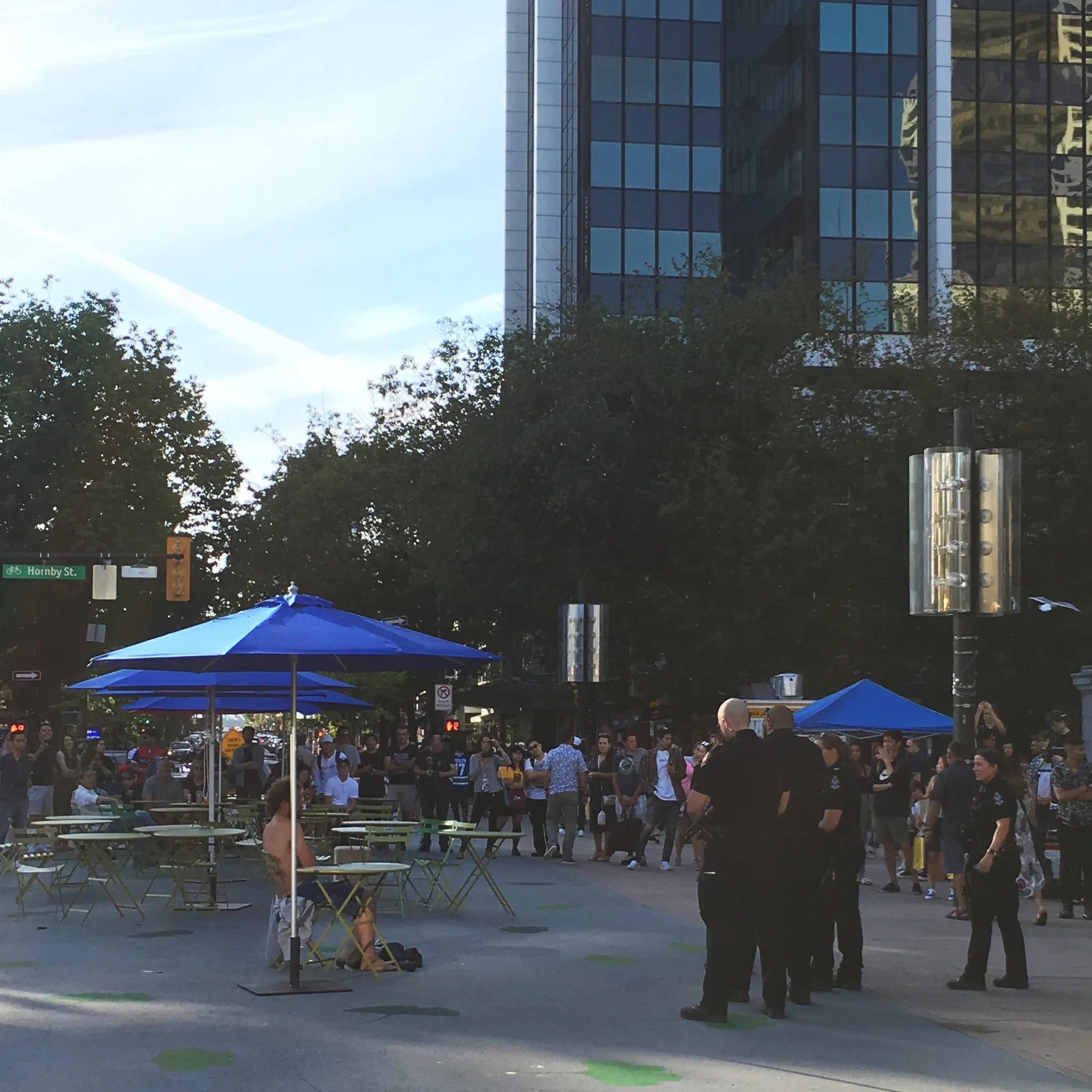 밴쿠버 아트 갤러리 앞에 있는 테라스였는데, 왼쪽에 있는 상의탈의남이 마약사범인 듯 했음. (바닥에 주사기 많았음)