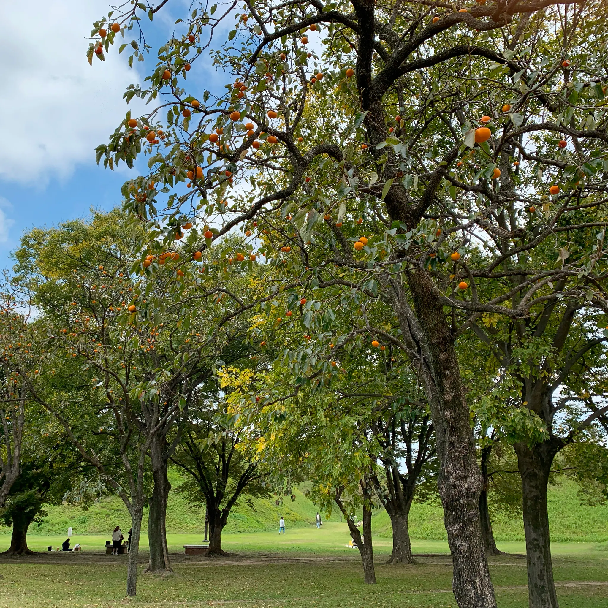 파란하늘에 초록초록한 나무들. 주렁주렁 열린 감들이 주황색 포인트도 주는 이 풍경