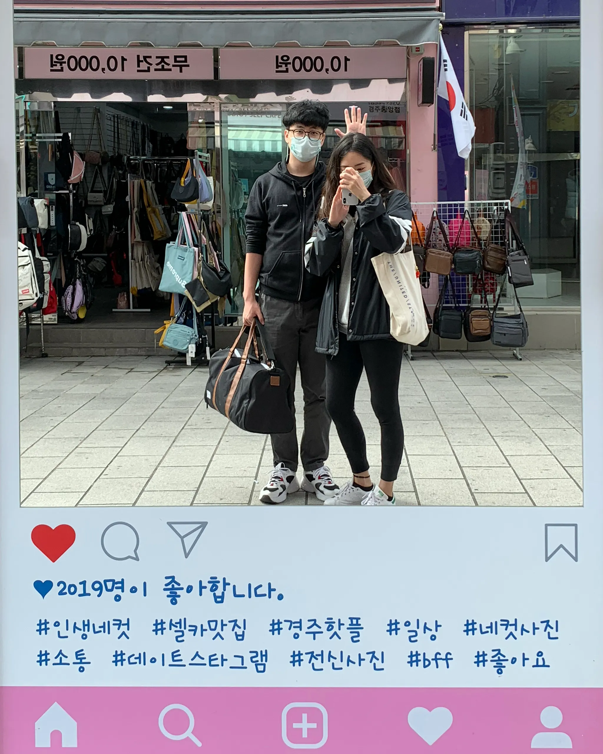 숙소 체크아웃 후 인생네컷도 찍었다. 인생네컷 가게 앞을 이렇게 특이하게 거울로 꾸며놓아서 신기했다. 내 머리 위는.. 새로 장만한 신상 모자