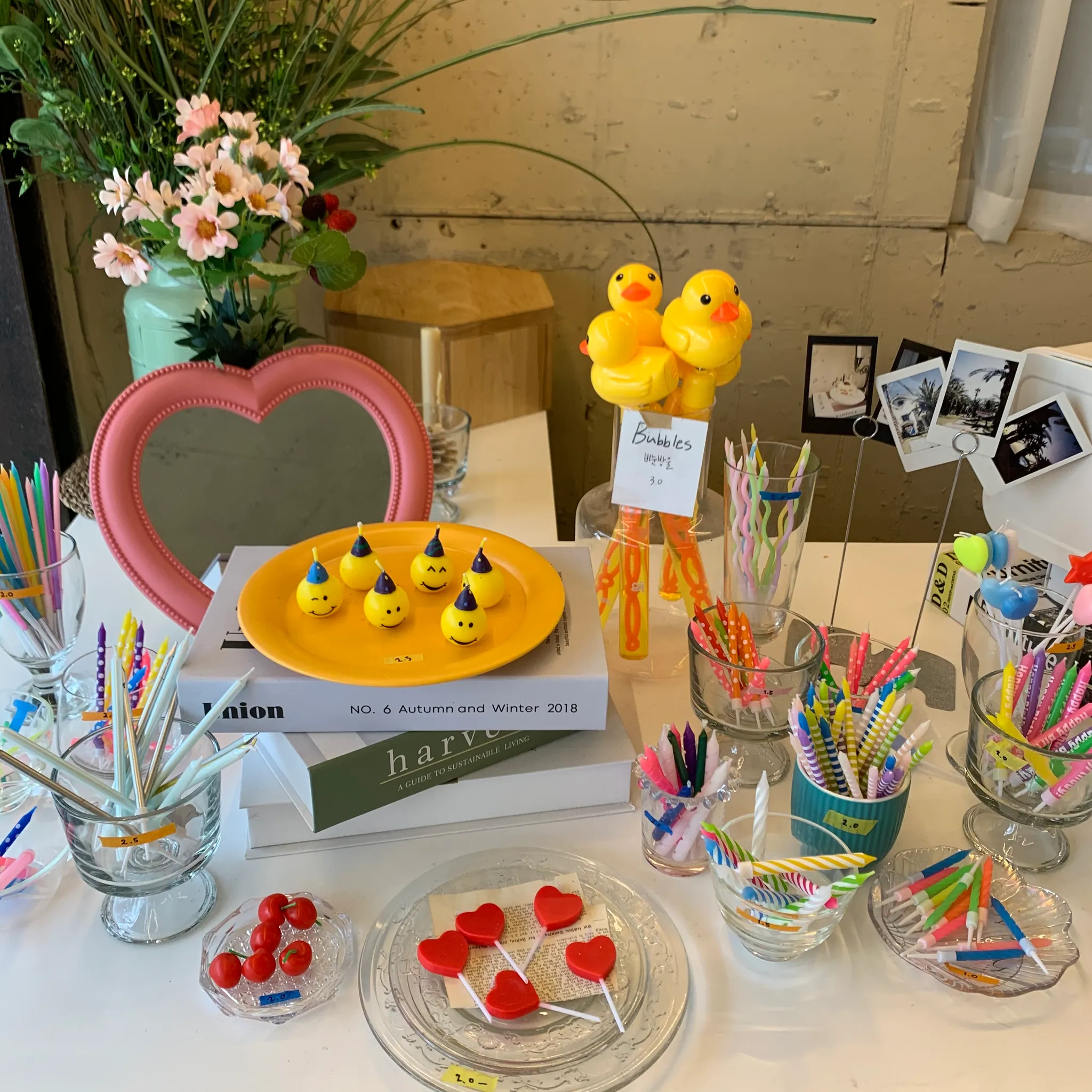 어느 카페를 갈까 둘러보다가 결국 간 곳은 카페 팜파네라는 곳이었다. 이렇게 귀여운 초들도 많은 이 곳. 이런 큐티하고 알록달록이들 정말 취향저격이다.