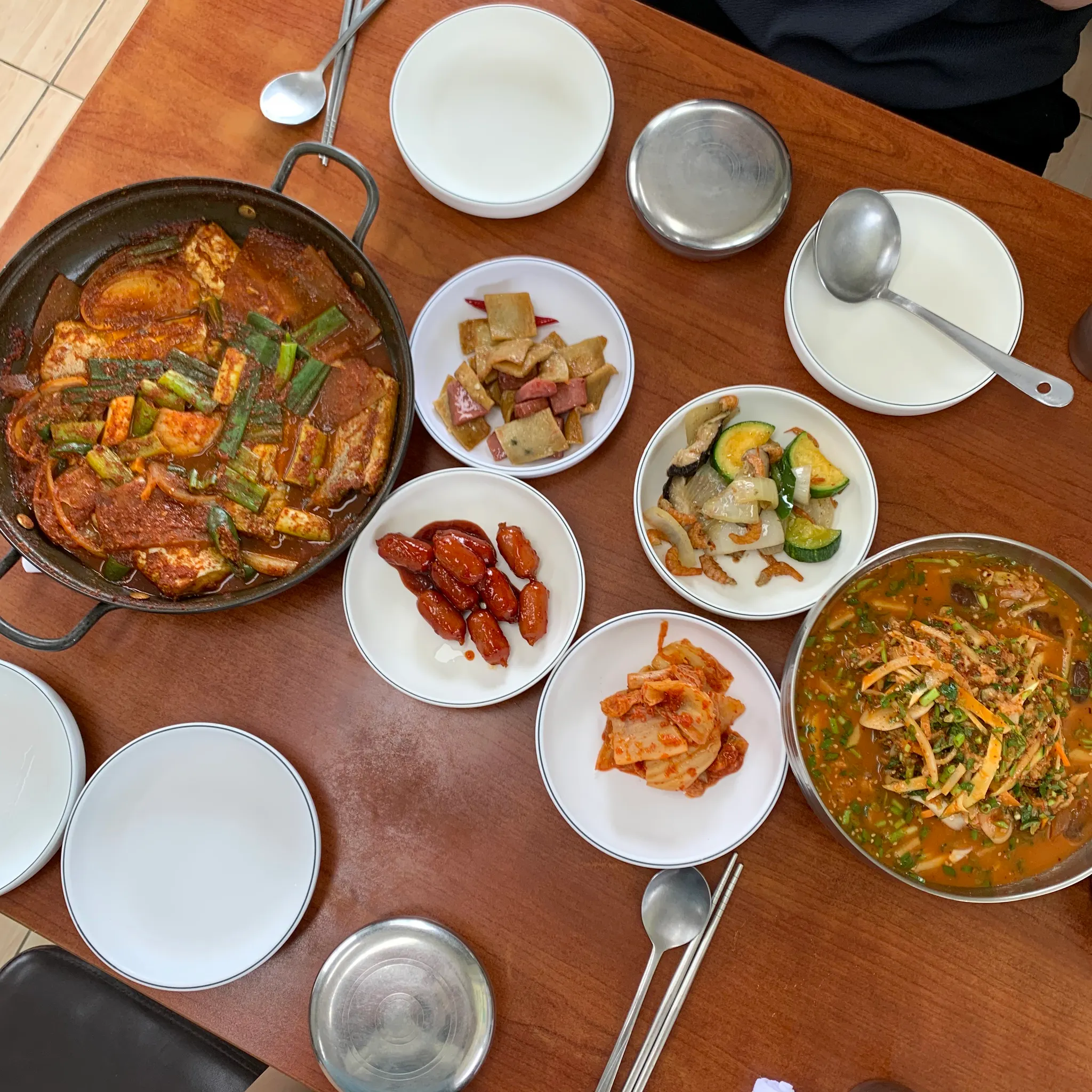생선 머리통이 그대로 있어서 나는 먹지 못했다. 하지만 갈치조림은.. 단 한 점도 남겨두지 않았지. 밑반찬도 맛있고 꼭 가정집 밥 먹는 것 같았다.