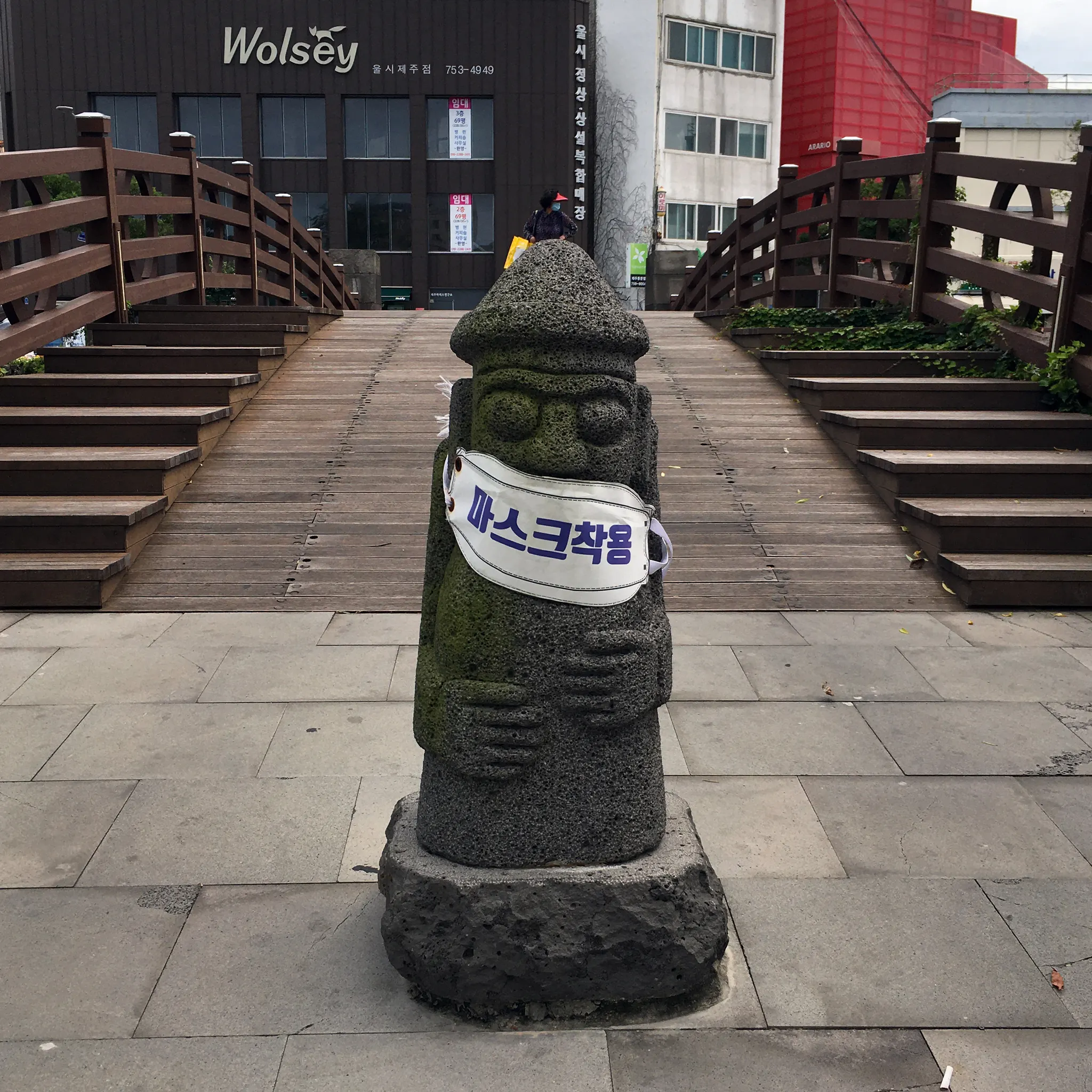 여기에도 마스크를 쓰고 있는 돌하르방. 왠지 짠해 정말 저 때만 해도 이렇게나 길어질 줄 몰랐던 코로나.