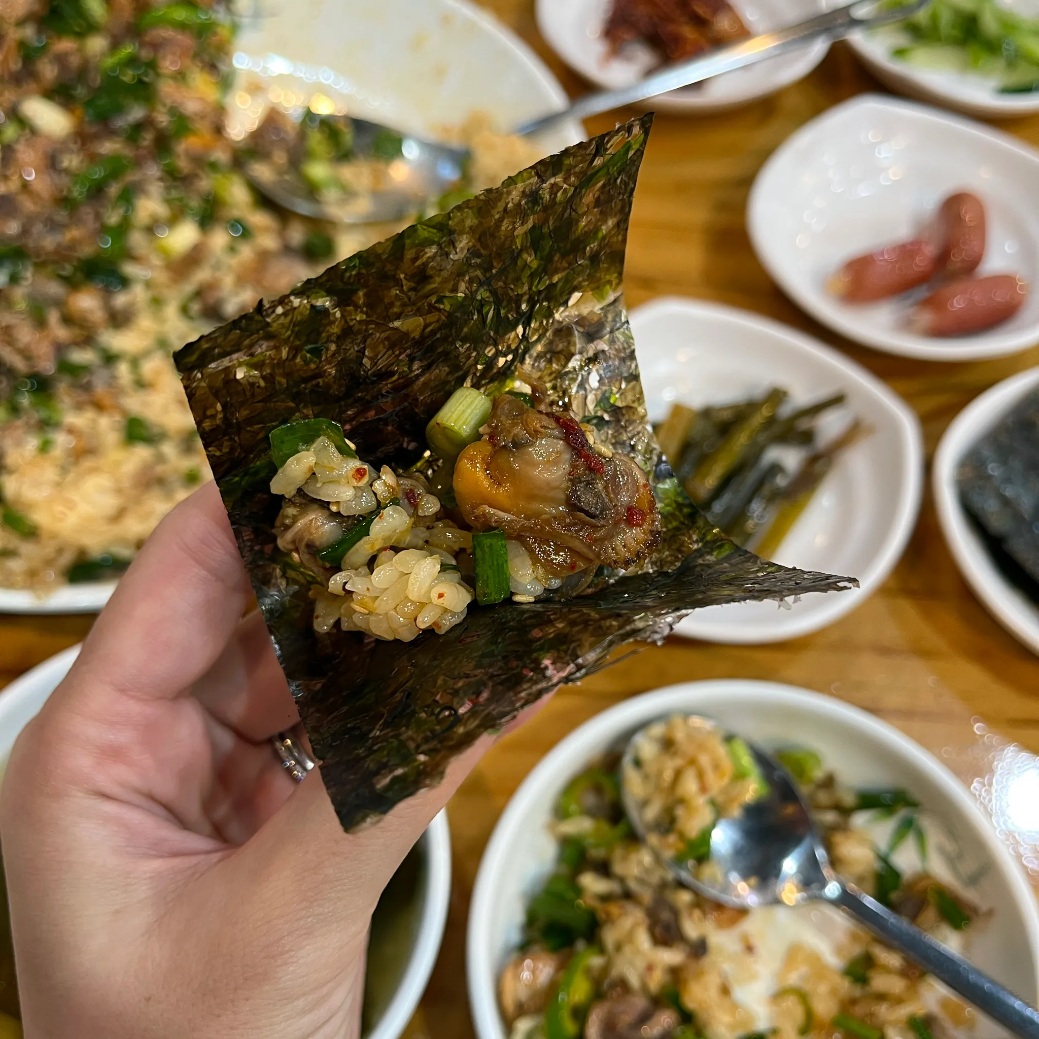 이렇게 김에다가 꼬막비빔밥 싸 먹으면 을매나 맛있게요~! 꼬막도 맛있는데, 비빔밥 간이 정말 딱 알맞아서 너무너무 맛있게 먹었던! 마음처럼 더 많이 들어가지 않는 나의 위장이 원망스러울 지경이었음ㅎㅎㅎ 정말 완전 추천하고 싶은 강릉 찐맛집!