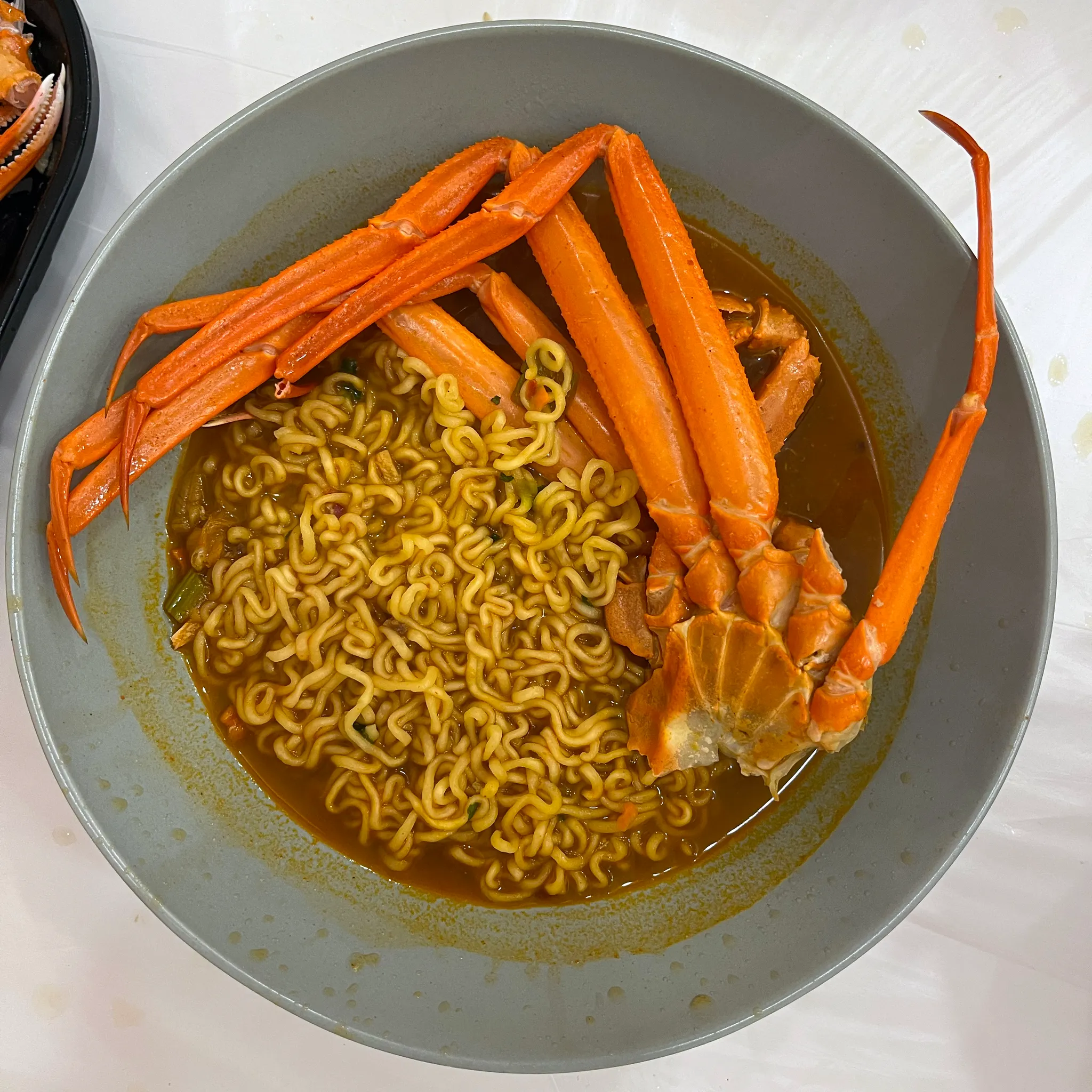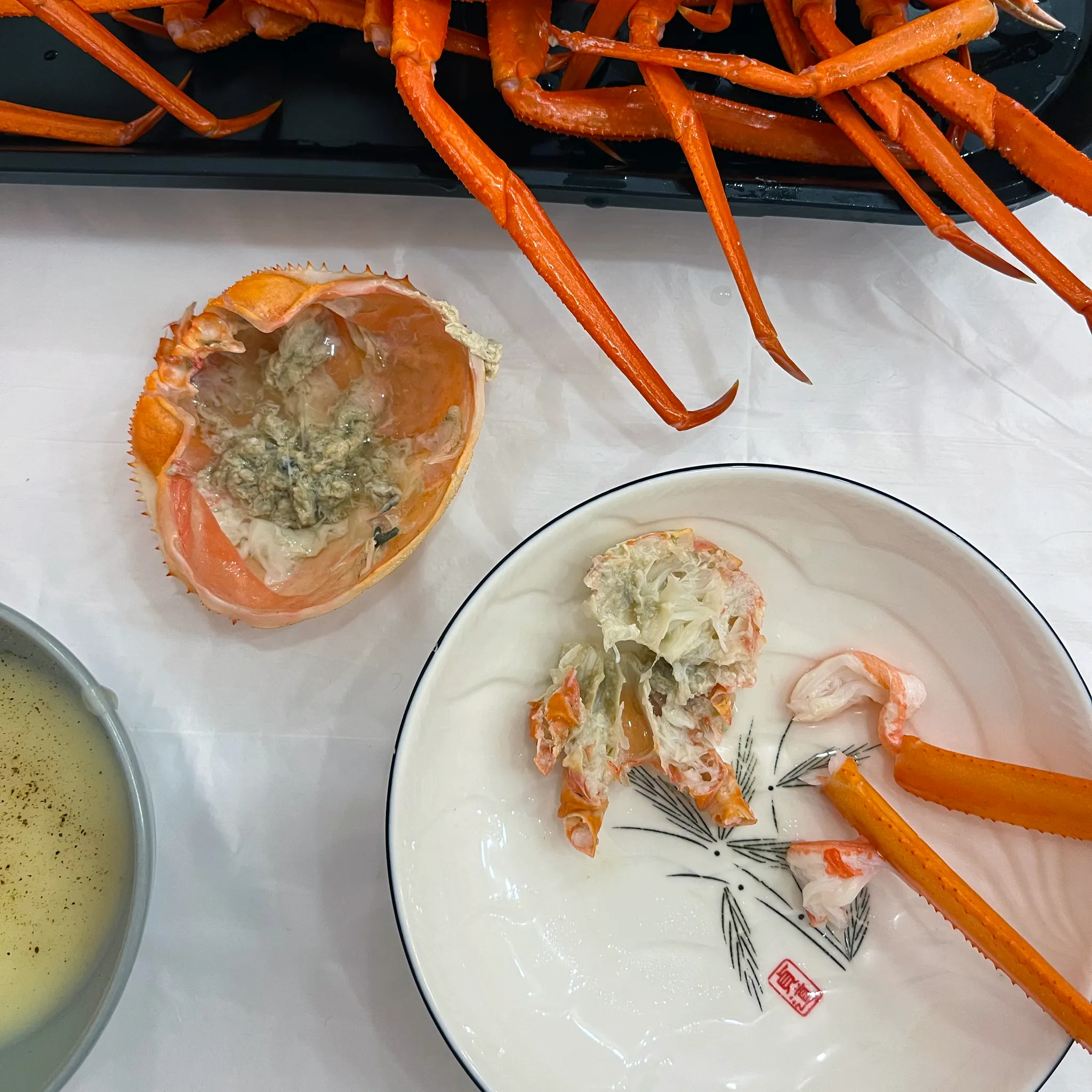 직원분이 발라먹는 법 알려주셔서 그대로 하니 이렇게 게 다리 살이 쏘옥! 하지만 홍게는,, 당연한 이야기이지만 대게보다 다리도 가늘고 살이 적었다 먹으면서 깨달음. 아 내가 먹고 싶었던 건 홍게가 아니라 대게였구나..!