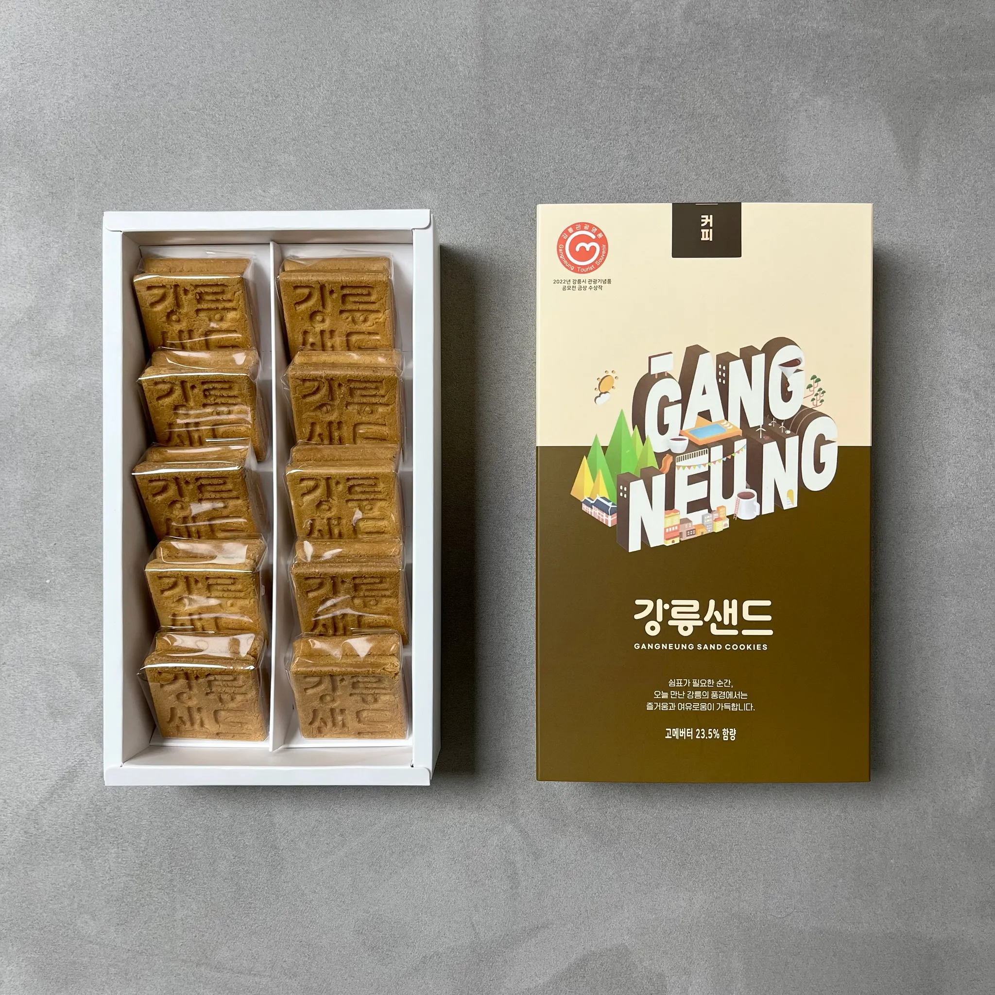 제주에 제주 마음샌드가 있다면 강릉에는 강릉샌드가 있다고 하여 방문. 솔트 크림치즈와 프랑스 고메버터 쿠키, 그리고 그 안에는 최상급 원두로 만든 커피 스프레드가 있다고 한다.