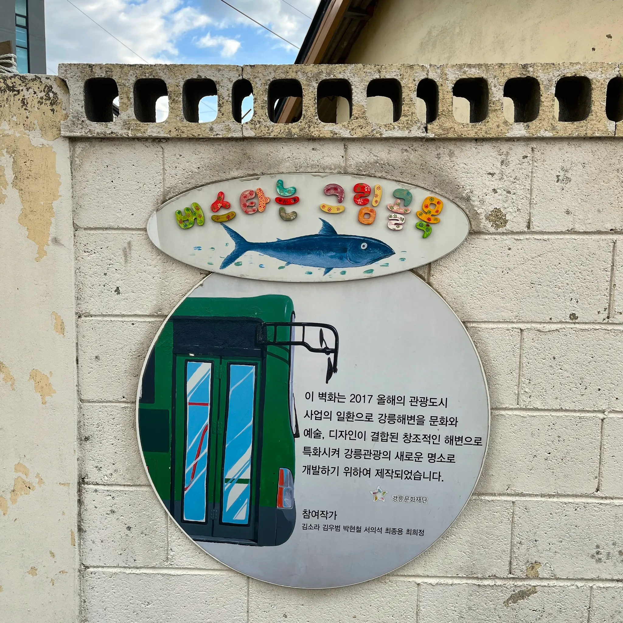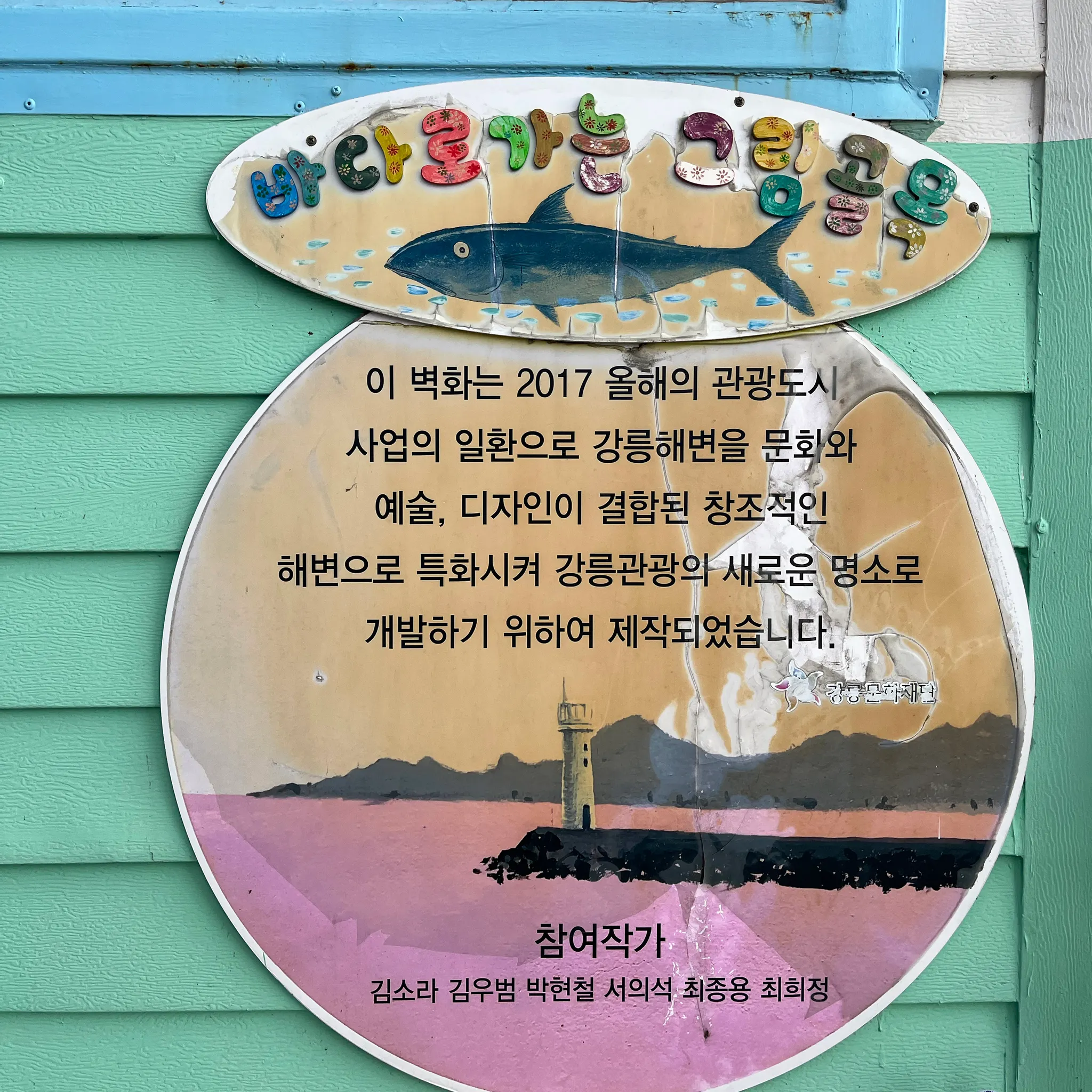카페에서 한참 수다도 떨고 회색빛 바다도 감상하고 나온 우리. 옆쪽으로 버스타는 그림골목이라는 것이 있었다. 올해의 관광도시 사업으로 강릉해변을 예술과 접목시켜 관광 명소로 만들기 위한 벽화 골목이었다.