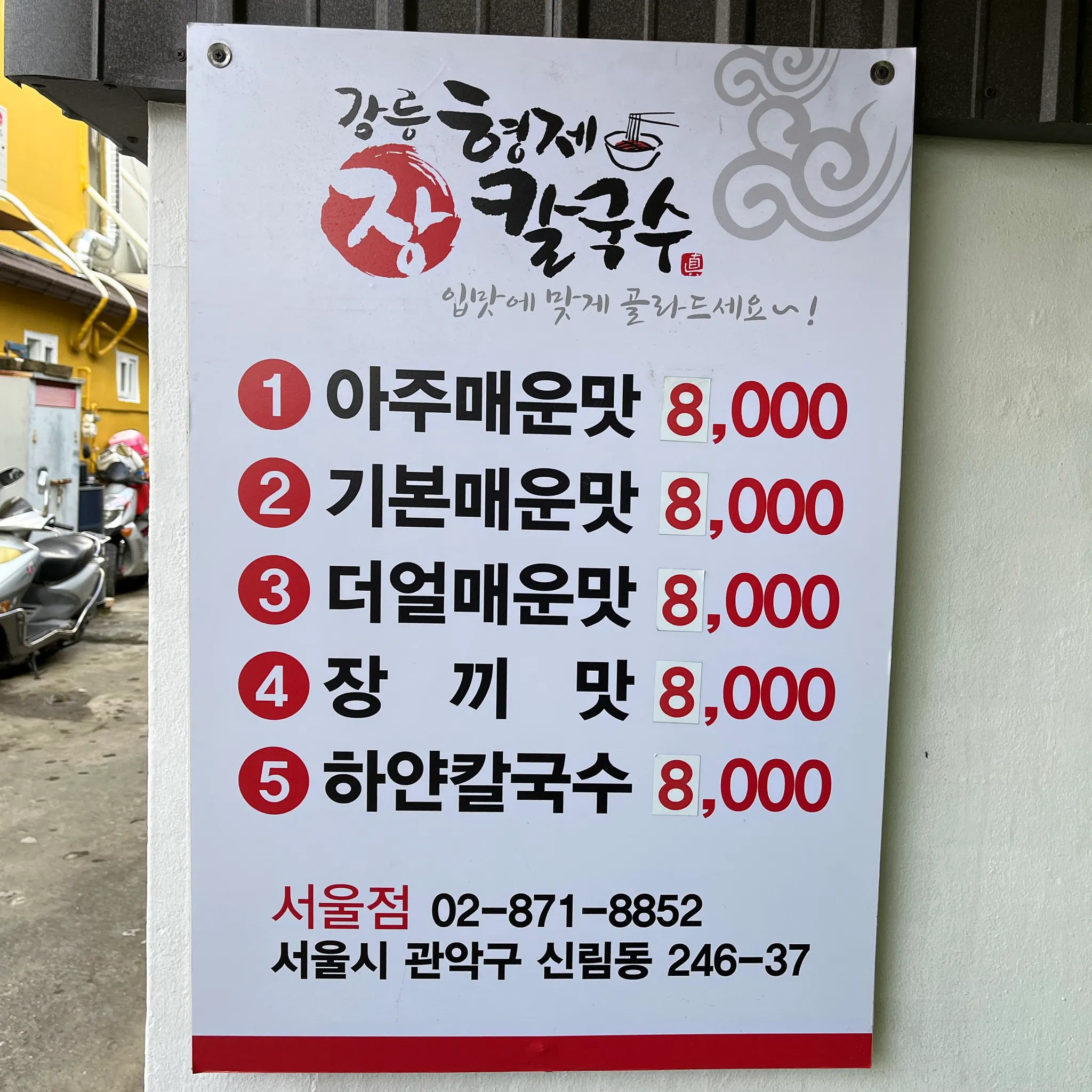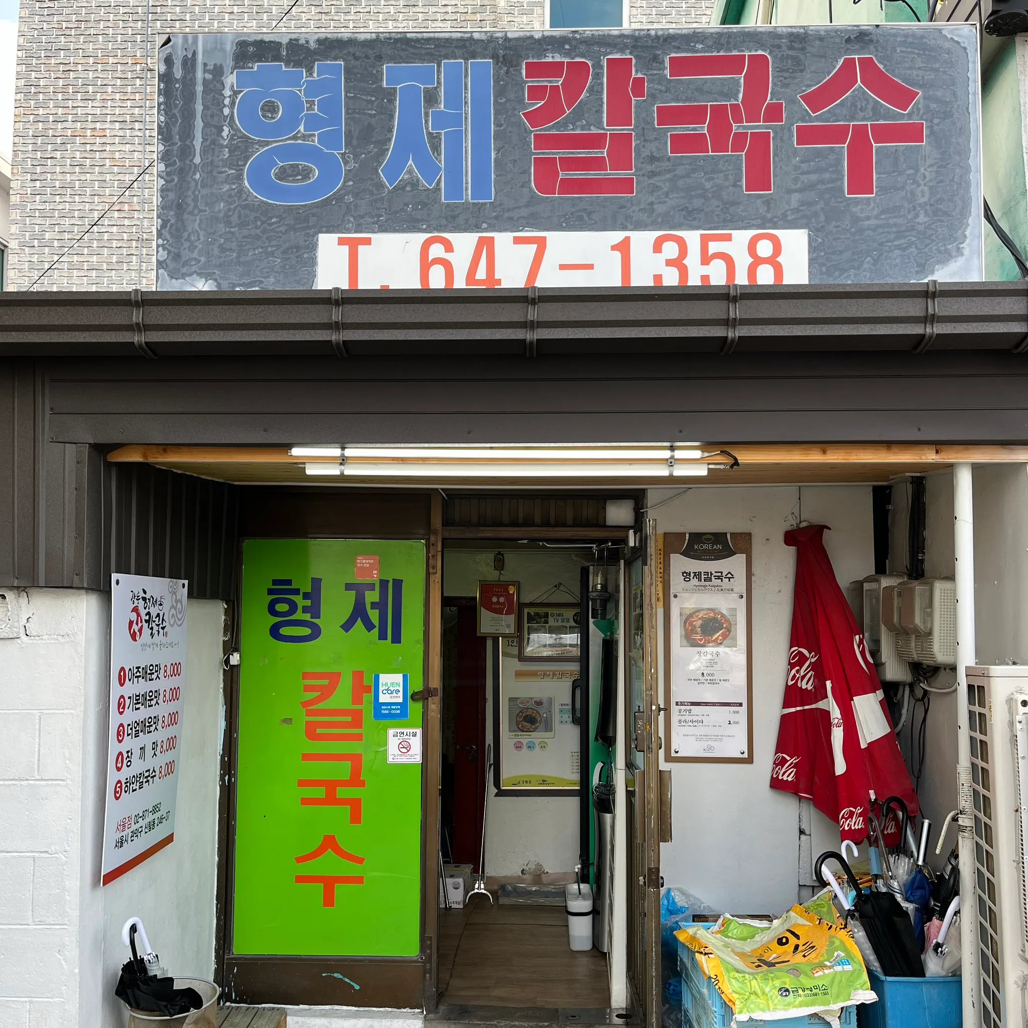 그리고 오늘의 주인공은 바로!!!!! 형제칼국수🥹🫶🏻 짝꿍이랑 제주 여행가서 장칼국수 먹었을 때 강릉가서 꼭 다시 먹어보자는 약속이 지켜지는 바로 그 순간이었다. 형제 칼국수는 강릉 맛집으로 워낙 유명해서 기본 한 시간 기다려야 한다는데 평일 3시라 그런지 다행히도 바로 들어갔다. 간판부터 벌써 맛집 스멜이 나고,