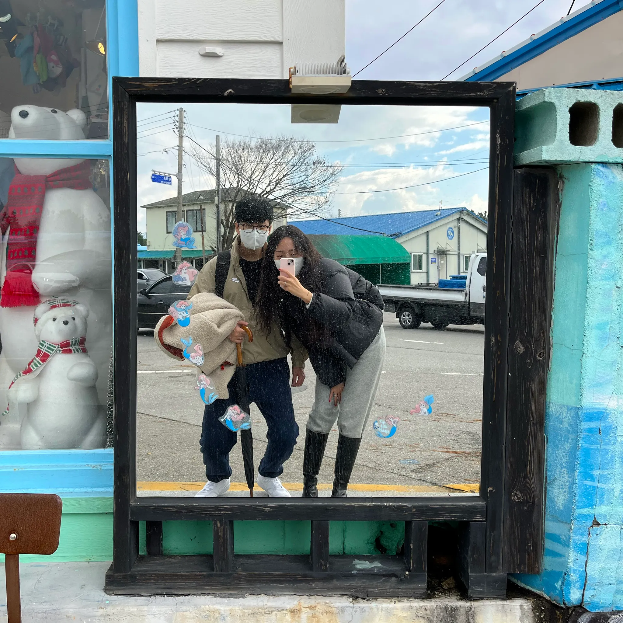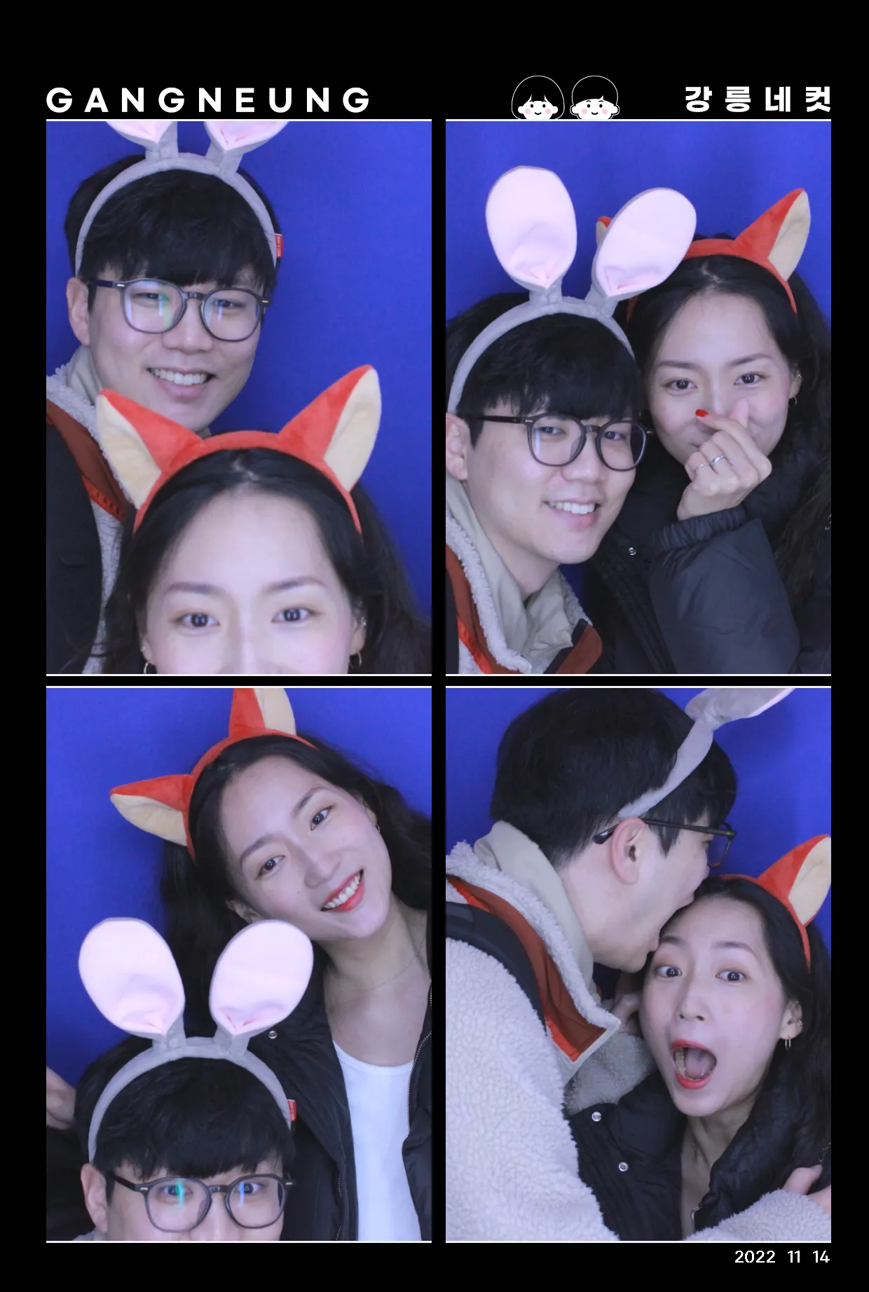 강문해변 걷다가 발견한 인생네컷. 여기에서의 이름은 강릉네컷이다. 우리의 부부 버킷리스트 여행지에 마침 강릉이 있어 인증샷을 남기려고 들어감! 각각 닉과 주디가 되었다.