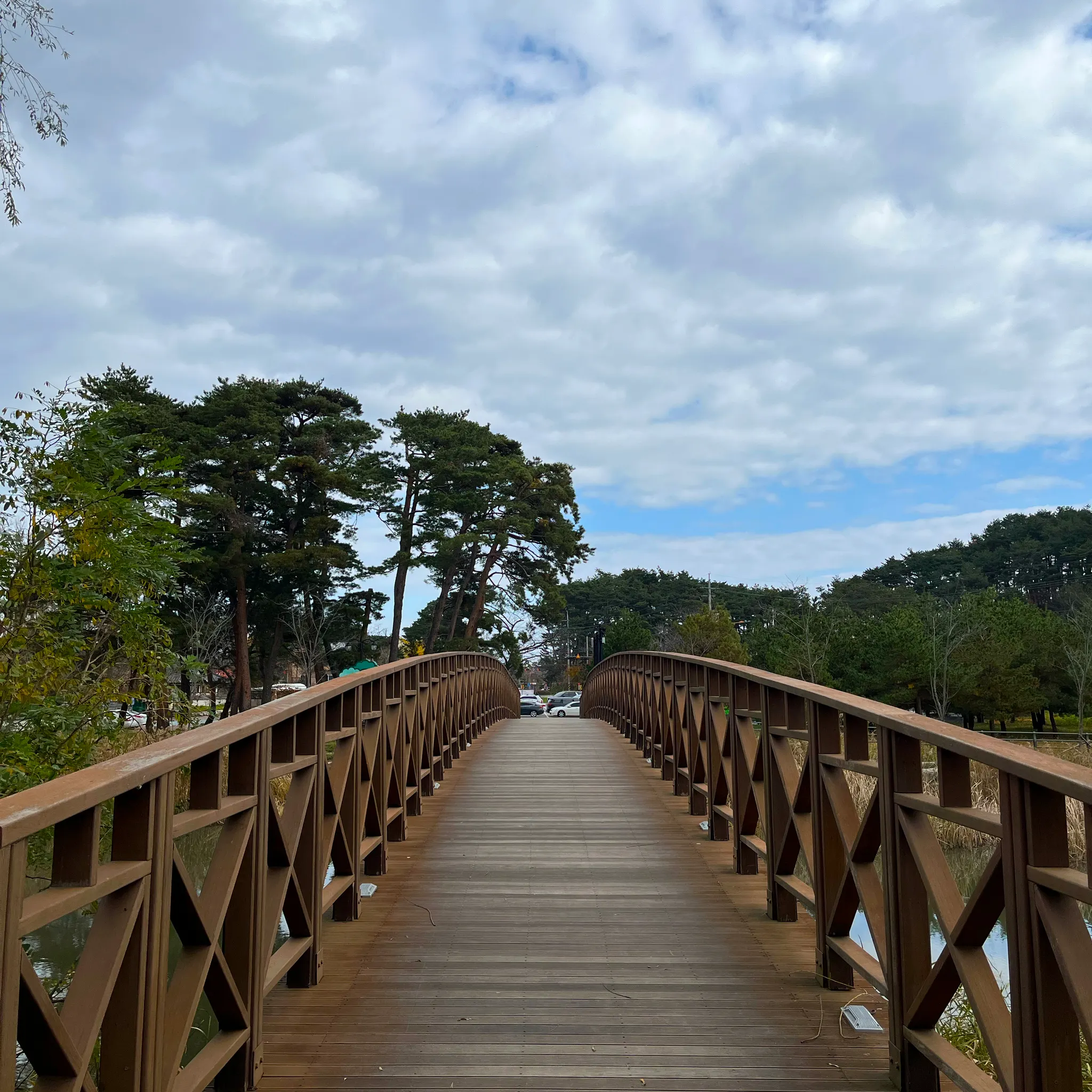 이 나무 다리를 건너면 허균, 허난설헌 기념공원에 갈 수 있다.