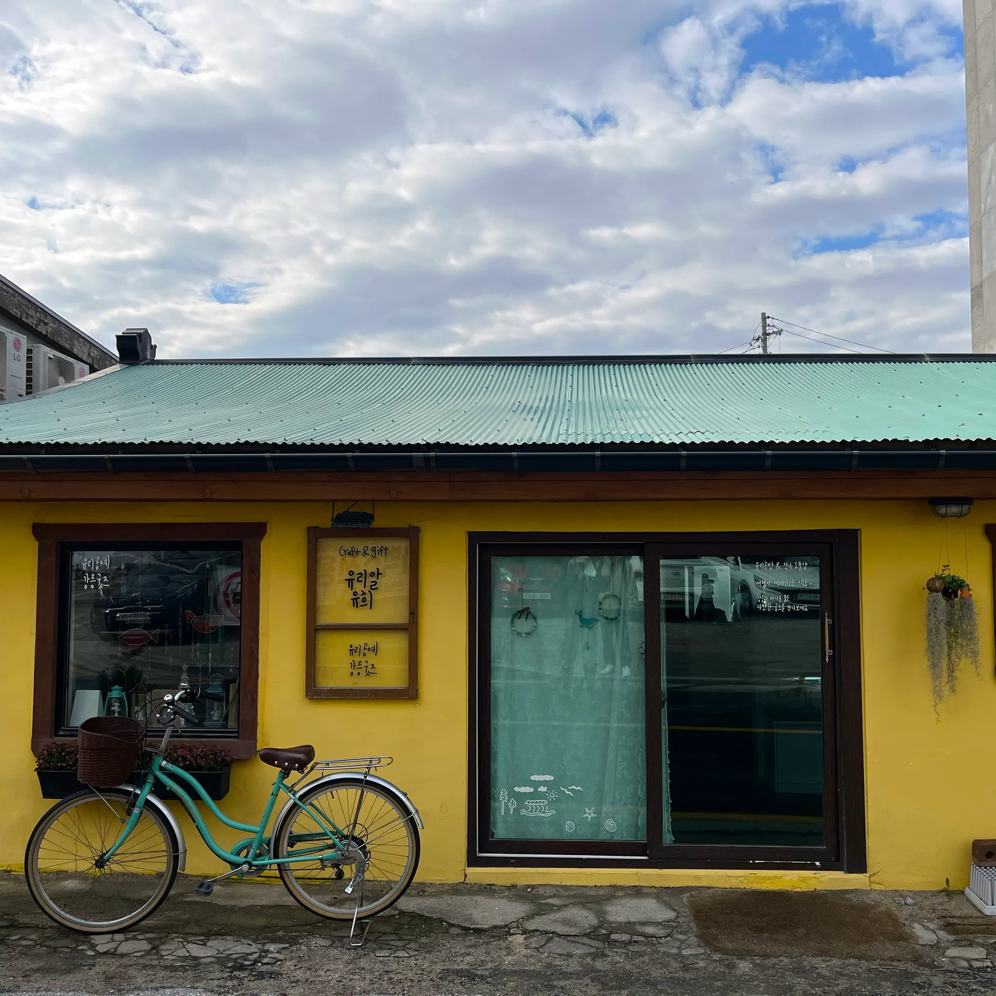어제 구경했었던 유리공방 소품샵 유리알 유희. 노란 외벽과 청록색 지붕, 그리고 자전거까지 이루는 조화가 마음에 들었다. 아직 문을 열지는 않았지만 아침에 보는 느낌이 또 달라서 신기했다.