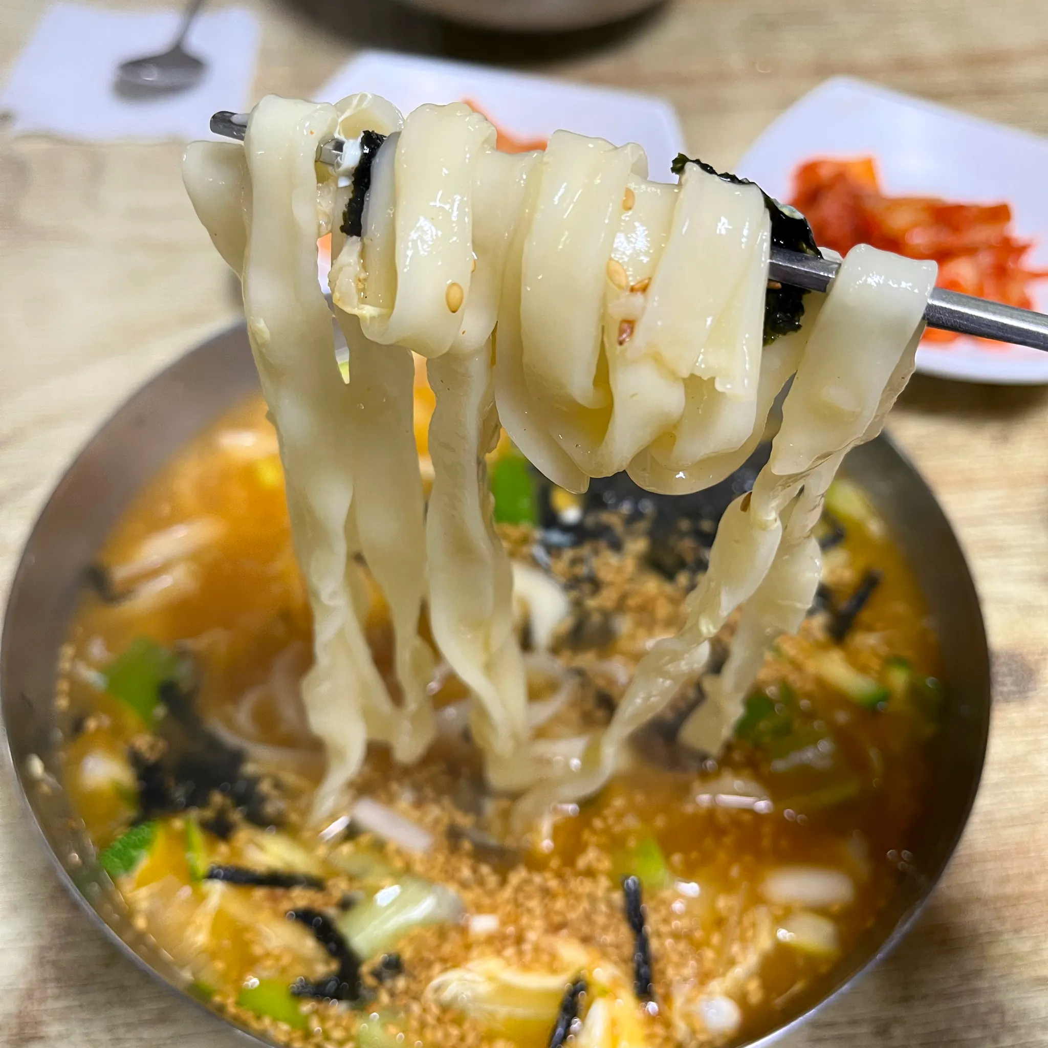그리고 일단 면이 진짜,, 대존맛!!!! 두꺼운 칼국수 면인데 수제비를 면으로 먹는 느낌??? 먹다보니 살짝 매콤해서 4단계로 시키길 잘 했다 싶었다. 정말 너무 맛있게 먹었던 형제 칼국수. 서울점도 가까우니까 꼭 한 번 가보기로!