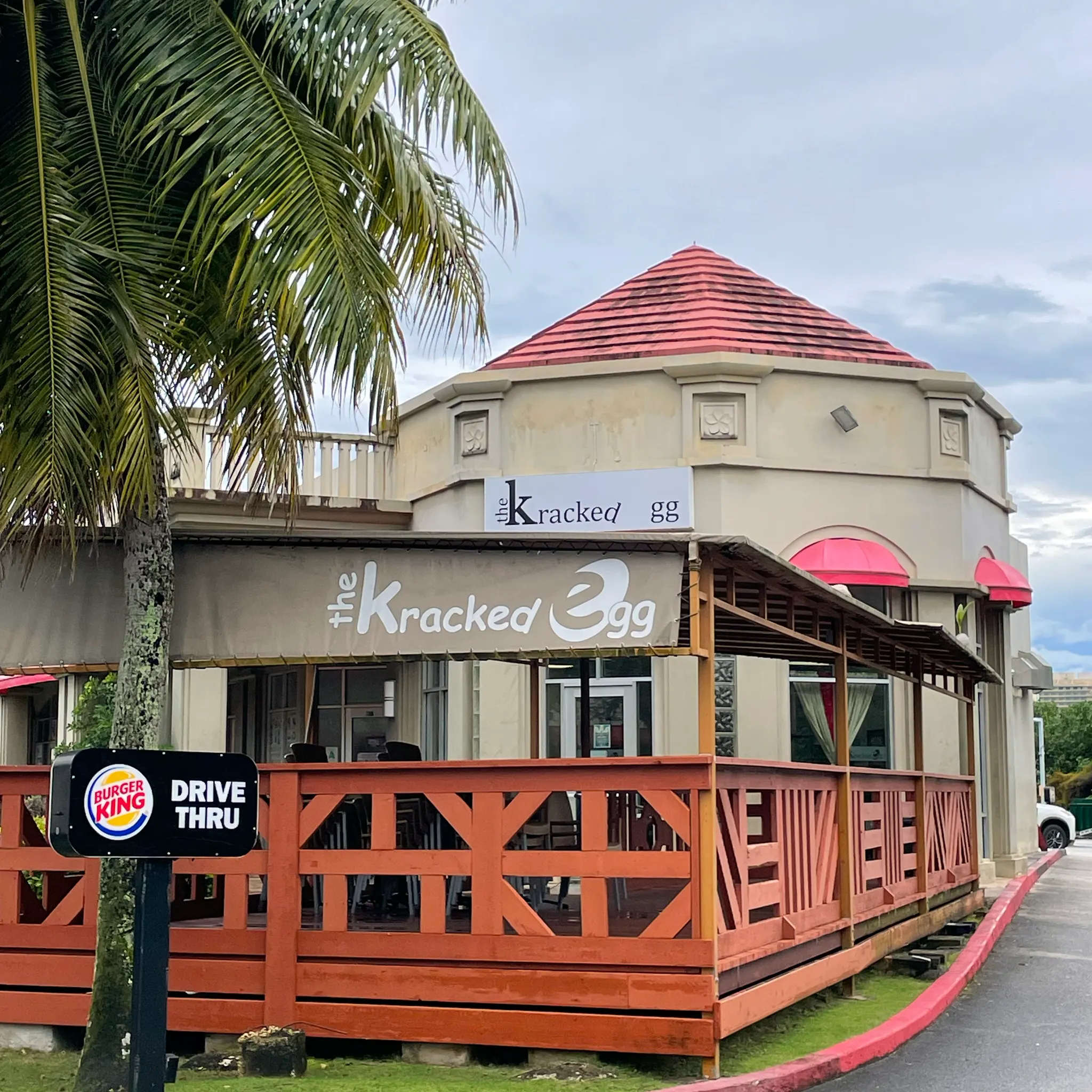 브런치를 먹으러 간 곳은 괌의 유명 브런치 맛집 더 크랙드 에그 The Kracked Egg였다. 관광객보다는 현지인들한테 더 인기가 좋다는 이 곳. 핫케이크와 에그 베네딕트로 유명한 가게였다. 다행히도 두짓타니에서 걸어서 5분이면 갈 수 있는 거리에 있었다. 바로 옆에 버거킹도 있나봄.