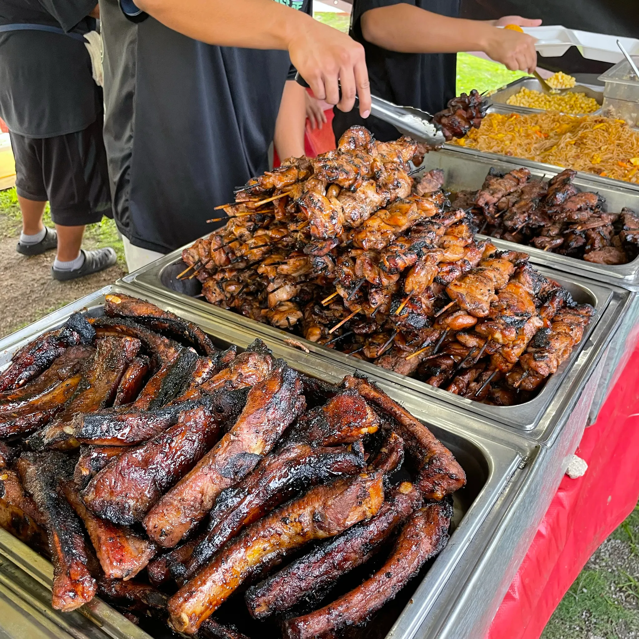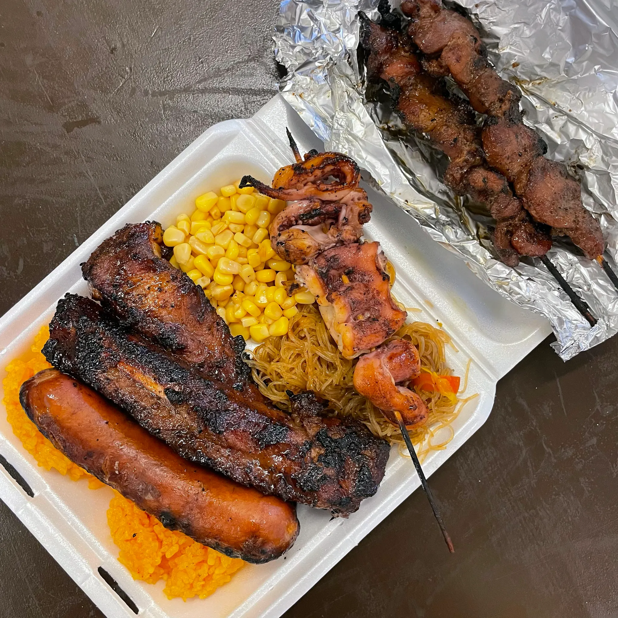 짠! 오징어 꼬치 아래에 있는 면은 판싯 Pancit이라는 건데, 잡채처럼 생기고 맛도 살짝 비슷하다. 하지만 내 기준 잡채보다 더 맛있었음🥹 찾아보니 필리핀 음식이라고 한다. 폭립 바베큐는 먹자마자 진실의 미간 나옴!!!!! 으으으으음~!!!하면서 먹었다ㅎㅎㅎㅎㅎ 물론 돼지 바베큐도 짱맛. 오징어도 존맛. 하지만 소세지는 짜서 조금 남겼다. 크리스 비비큐 정말 너무 맛있어서 이거 먹으러 차모로 야시장 간다고해도 그 이유가 충분함. 완전 찐맛집으로 추천
