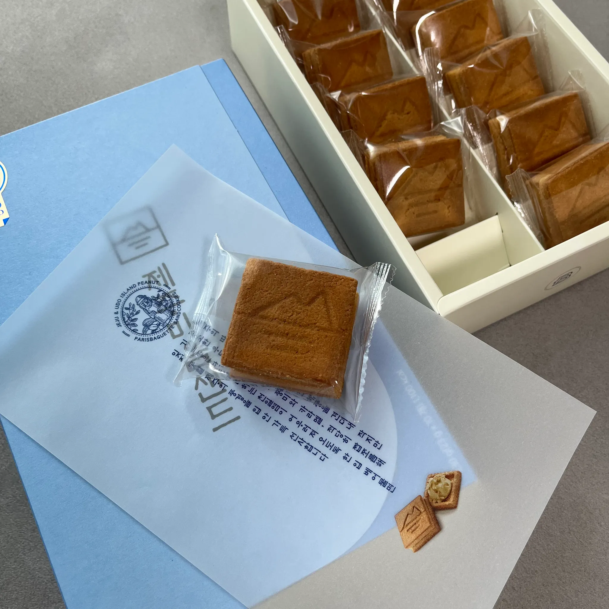 이 날의 메인 사건은 짝꿍과 나 사이에 아직도 회자되곤 하는 제주마음샌드 사건ㅎㅎㅎㅎㅎㅎ 예전에 친한 언니가 제주공항 파리바게트 딱 두 지점에서만 살 수 있다며 사다주었을 때 처음 알게 된 마음샌드. 우도 땅콩이 들어가있는 고급 땅콩쿠키는 내 마음을 사로잡았고🥹 그 이후로 제주에 왔다갔다 할 때마다 시간이 맞지 않아 번번이 실패했었다.