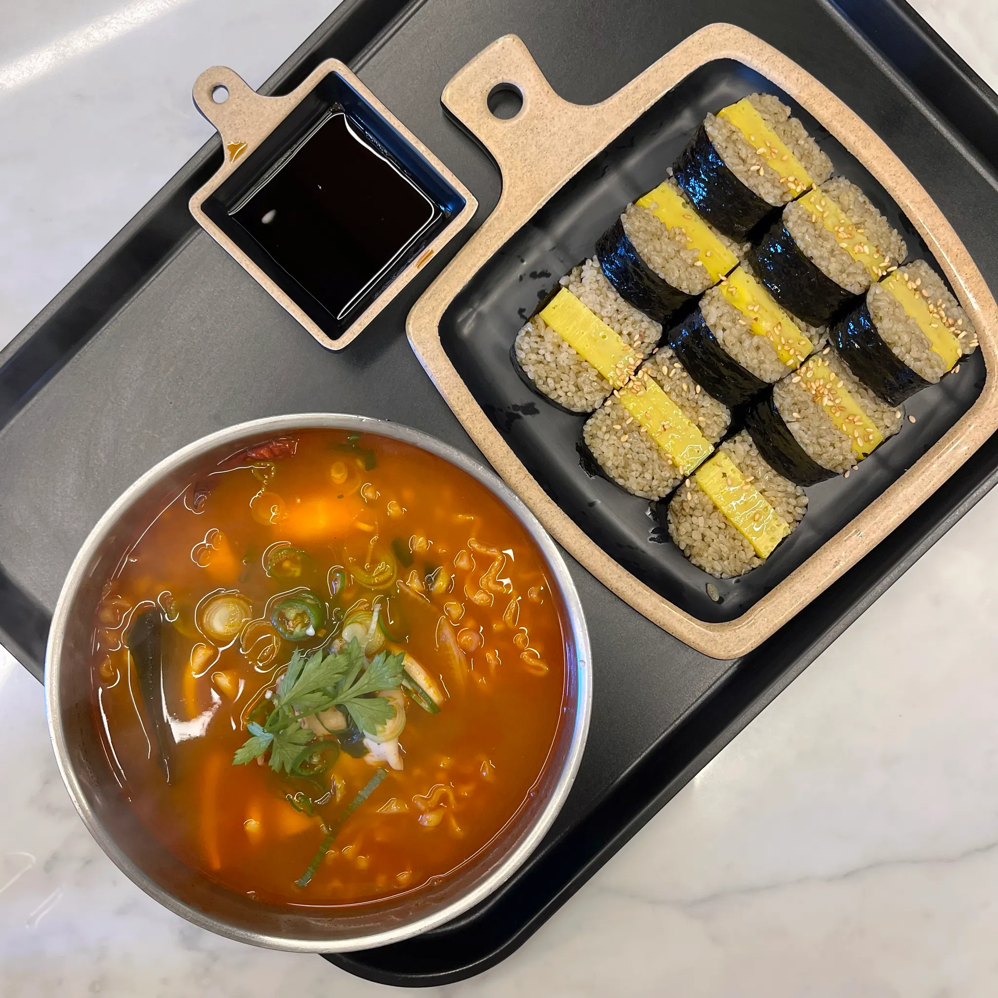 공항이랑 멀지 않은 김만복 김밥에 아빠가 먼저 와 있었다. 감동적인 상봉 후 주문한 만복이네 김밥과 해물면. 이제는 너무 유명해져서 가끔 서울 백화점 푸드코너에서도 만날 수 있는 김만복 김밥. 부들부들한 계란이 들어있는 전복내장 김밥이 시그니처 메뉴이다. 하지만 나는 전복 내장 맛이 많이 안 나서 기대만큼은 아니었던