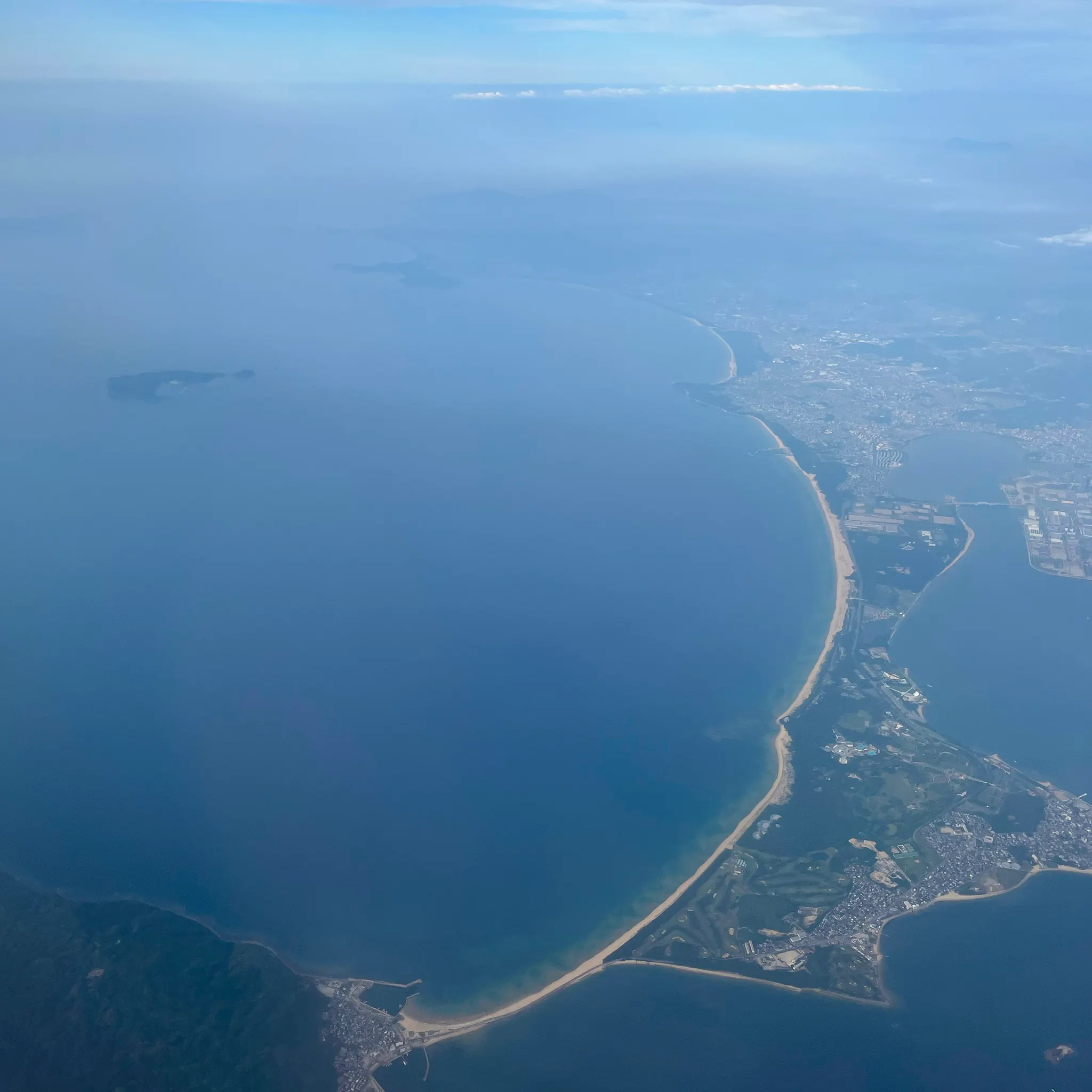 어제 다녀왔던 모모치 해변과 Marizon이 아래 쪽으로 내려다 보였다. 힝 어제 저기에 있었는데 나 왜 비행기 안이냐구