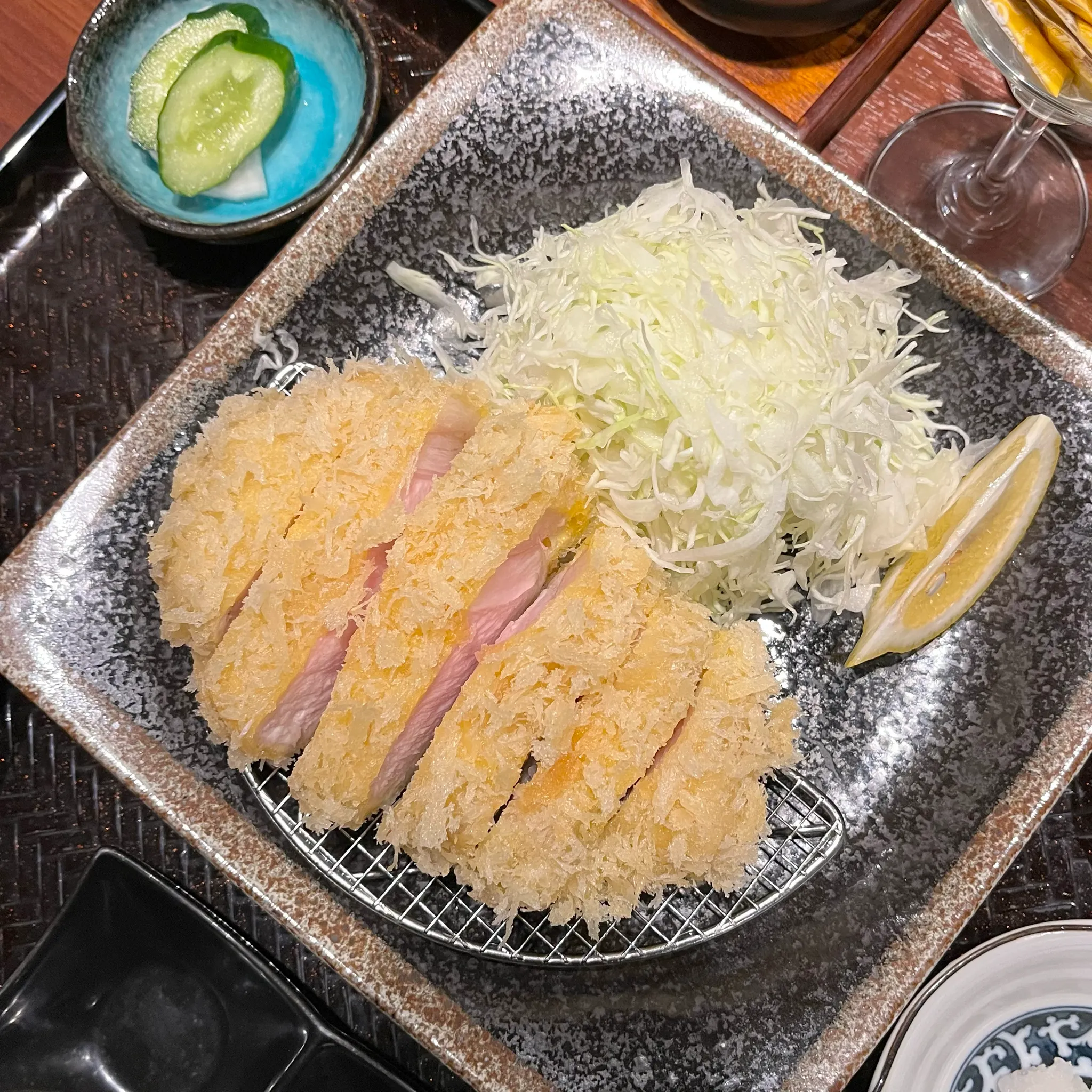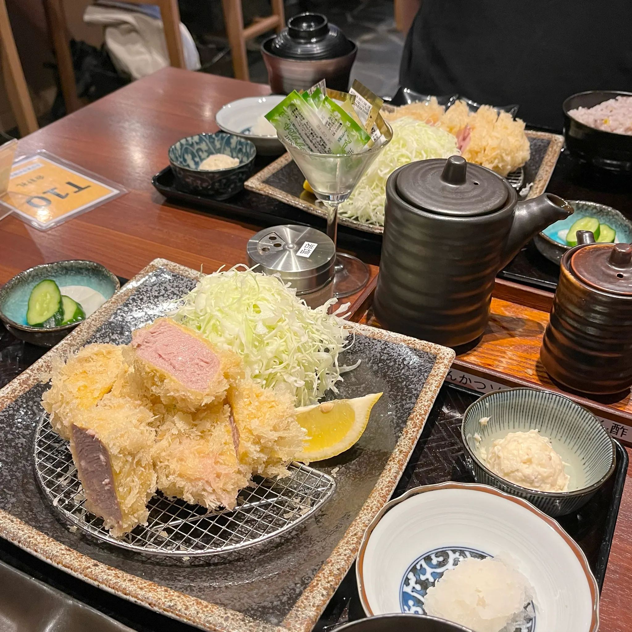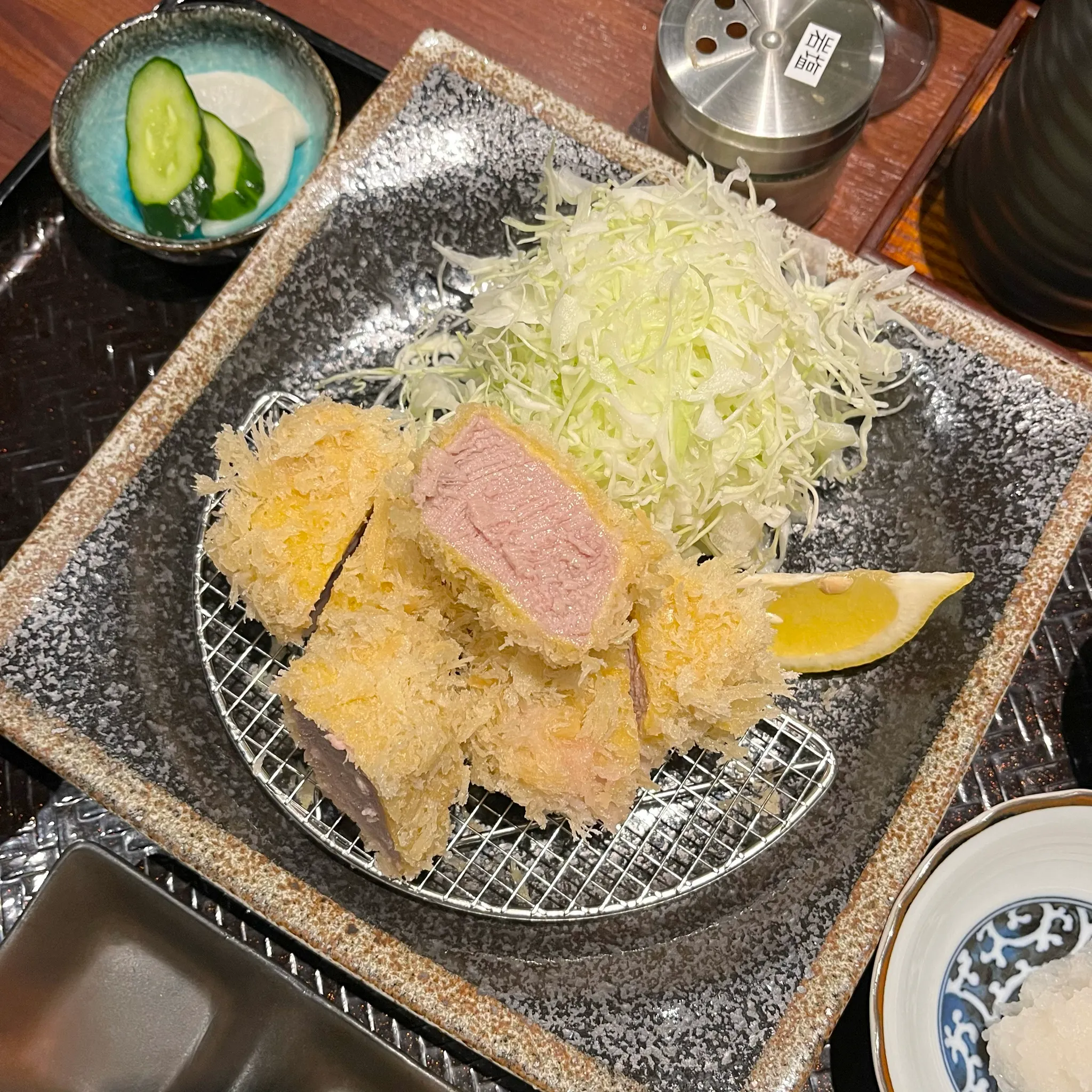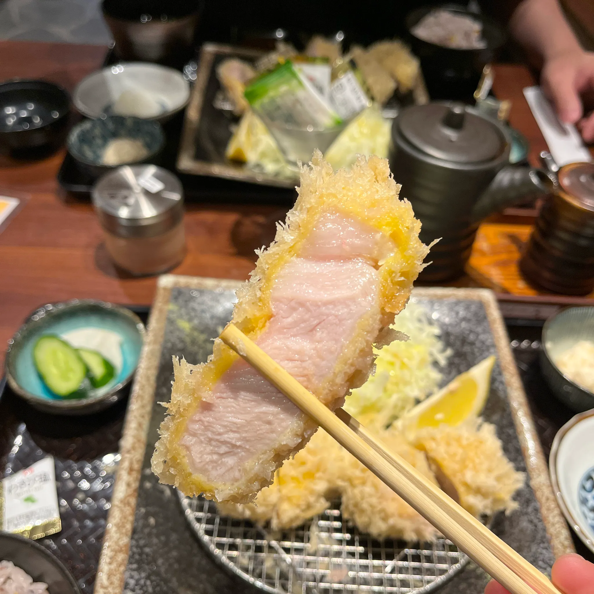 상급 등심 돈카츠의 단면은 이런 모양! 정말,, 육즙 정말,, 너무너무 맛있었다. 친구 결혼식 음식 다음으로 맛있었던 후쿠오카 음식이었을 정도! 다음에 후쿠오카 오면 또 와서 먹고싶을 정도!!! 후쿠오카 찐맛집 인정🥹