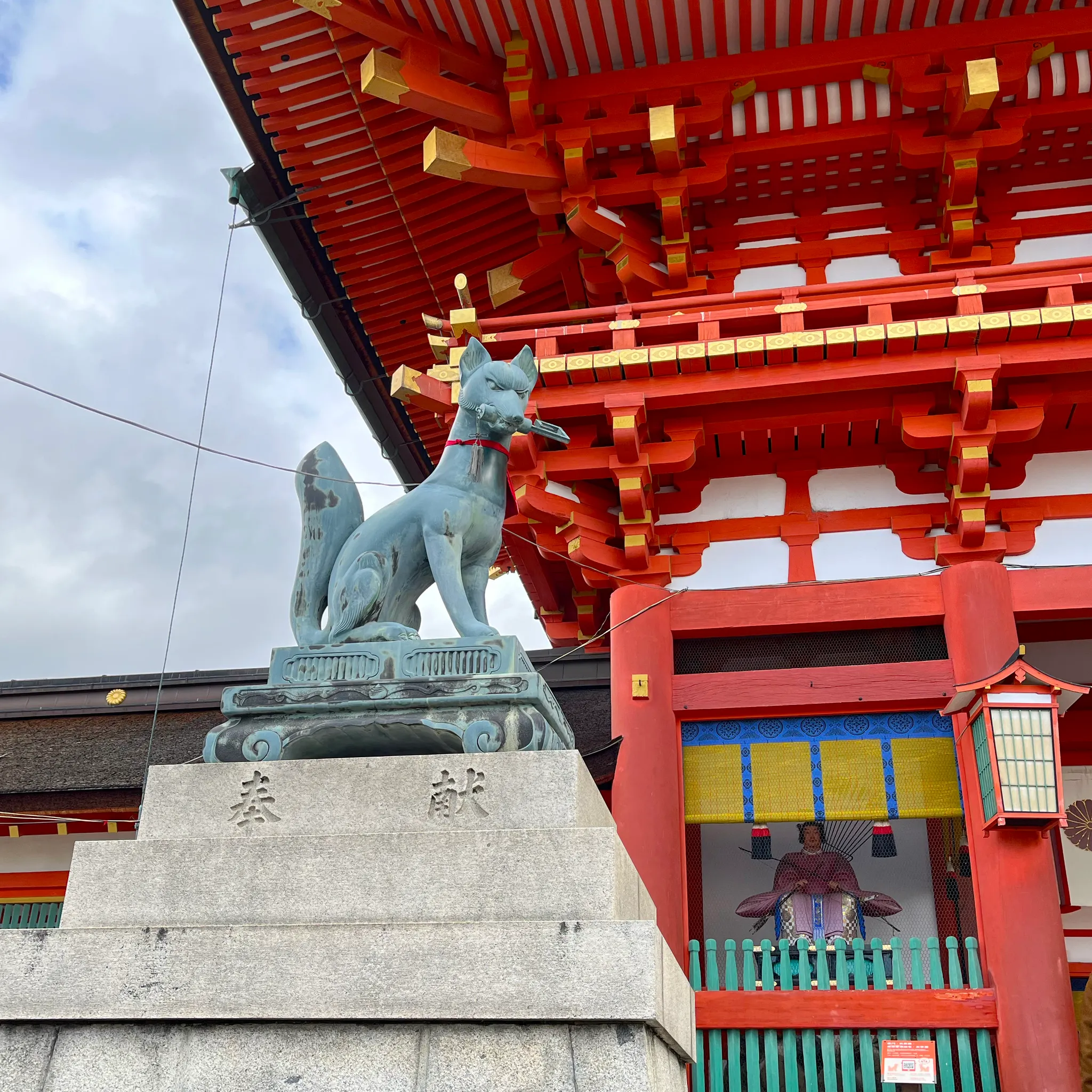 그래서인지 여기저기에서 여우 상을 볼 수 있다. 여우가 논밭에 있는 쥐들을 잡아먹어 풍요의 상징이라고 한다. 짝꿍이 나를 부르는 애칭이 여우라서ㅎㅎㅎㅎㅎ 짝꿍이 여우랑 같이 여우신사 왔다고 좋아함ㅎㅎㅎ