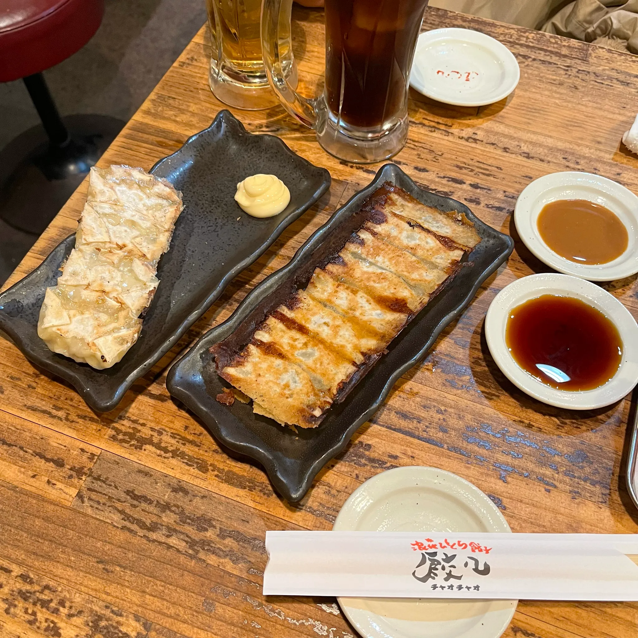 이게 바로 인기메뉴 1위인 차오차오 교자. 돼지고기가 들어있다. 일본 교자는 기름에 굽다가 나머지 부분은 물을 조금 넣어 수증기로 익힌다고 하는데, 이렇게 하면 아래는 바삭 위는 부들한 교자가 된다고 한다. 겉바속촉은 익숙하지만 아바위촉이라니? 근데 이게 또 맛있어