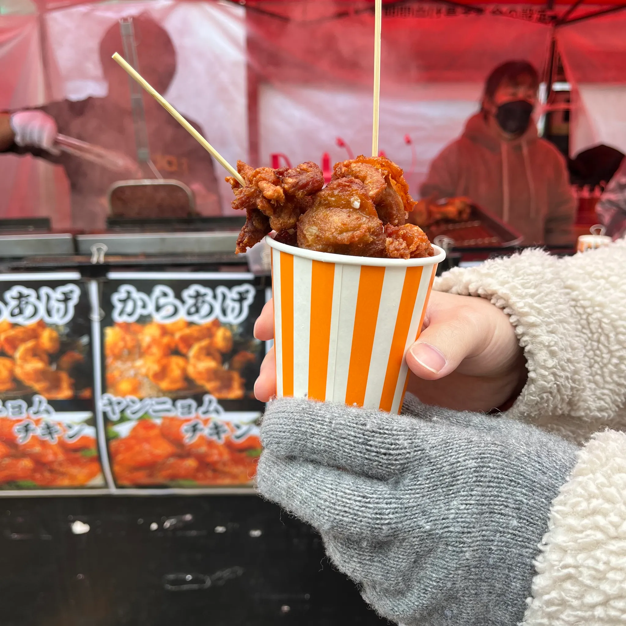 길거리 가라아게로 출출함부터 달래고 시작하기로ㅎㅎㅎㅎㅎ 맛은 그냥 다 아는 닭강정 맛. 근데 완전 창렬임. 가격 800엔ㅎ