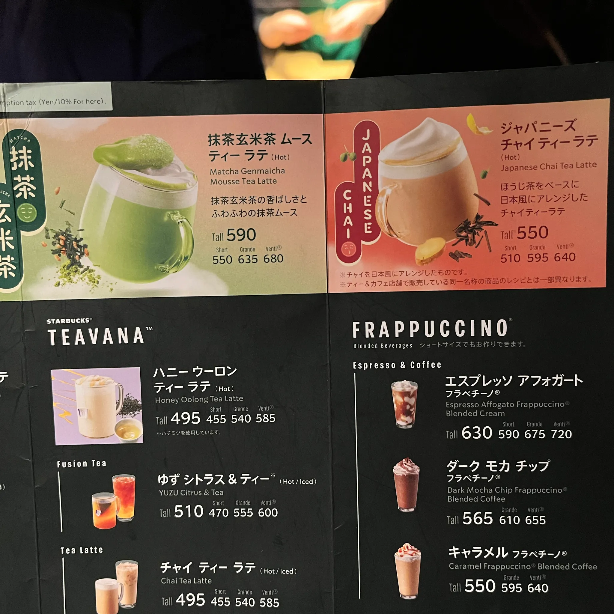 맨 위에 있는 말차현미라떼와 재패니즈 차이티라떼가 지금의 시즌음료. 각각 한 잔씩 먹어보기로 했다.