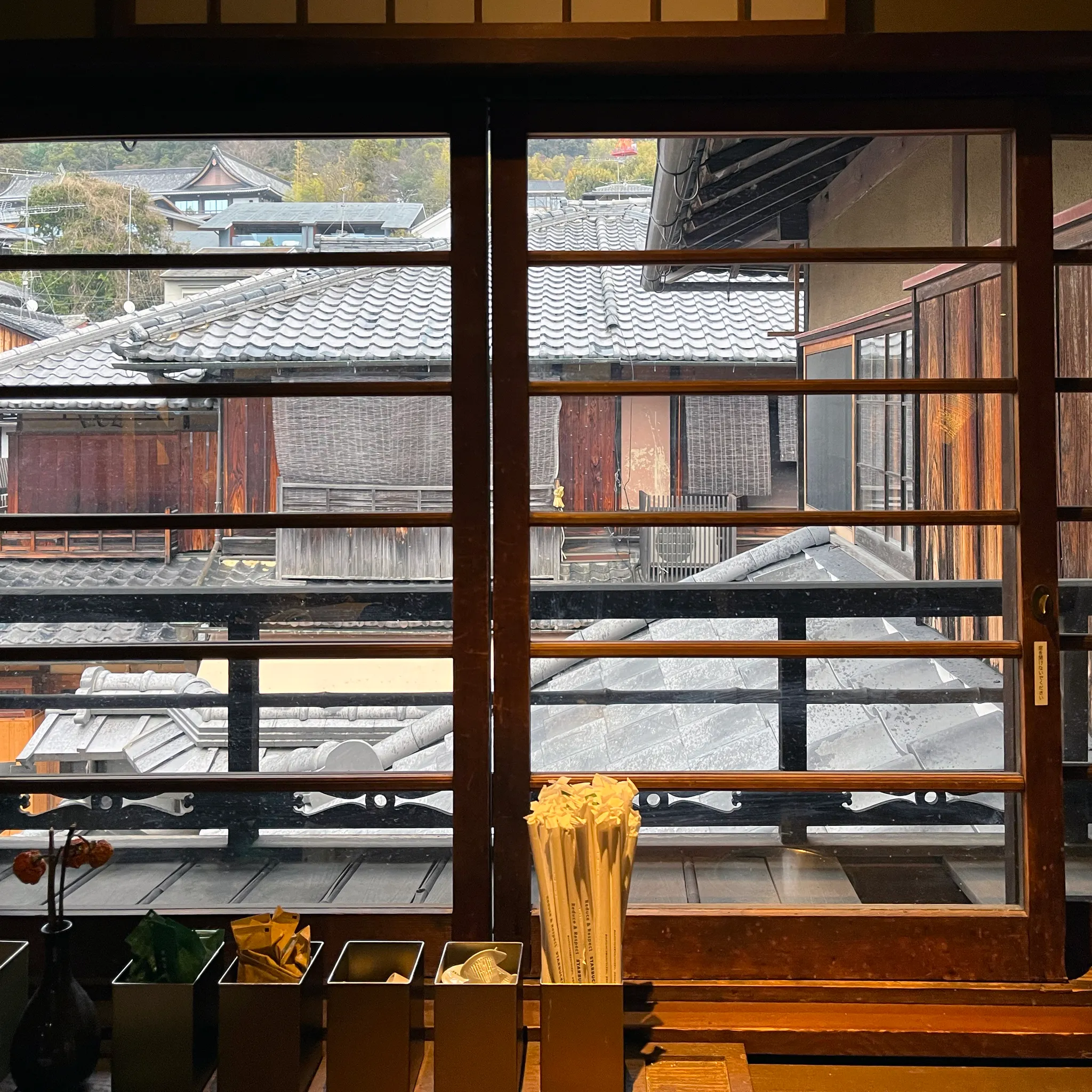 음료를 받으러 가는 길은 이런 느낌. 옛 가옥과 스타벅스라니이이! 전통과 현대의 조화란 이런 걸 말하는 걸까?싶었던 곳. 사람은 많고 내부는 좁지만 꼭 한 번 가볼만한 곳이었다. 다다미방에 있고 싶었는데 쏘 매니 사람,,