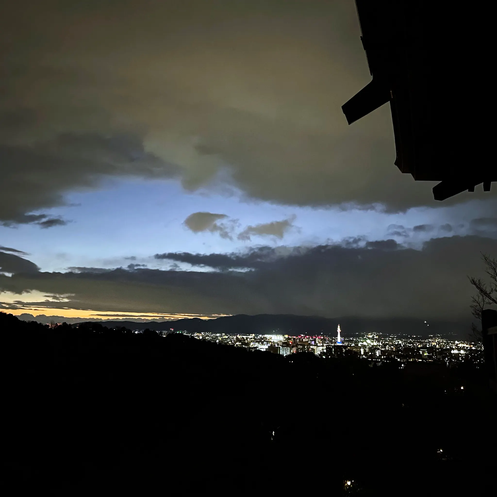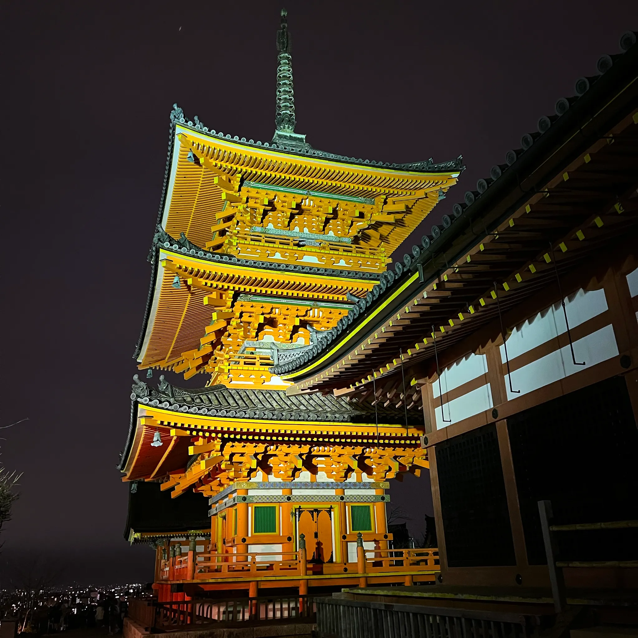 다시 본당쪽으로 건너왔더니 저 멀리로 교토 야경이 보인다. 중간에 혼자 우뚝 있는게 바로 교토 타워.