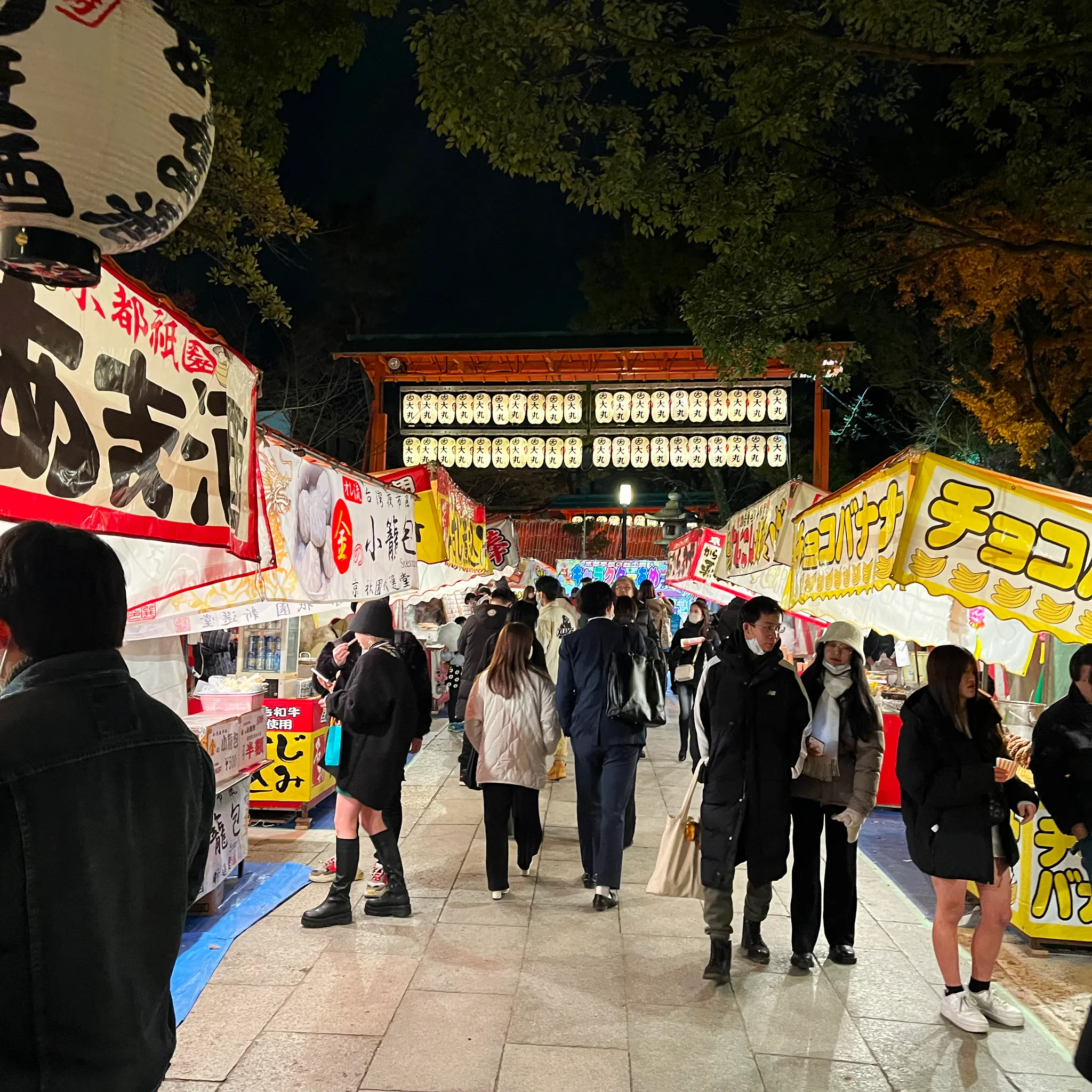 양옆으로는 만두, 초코 바나나, 가라아게 등 여러가지 먹거리들을 파는 노점상들이 쭉 늘어서있었다.