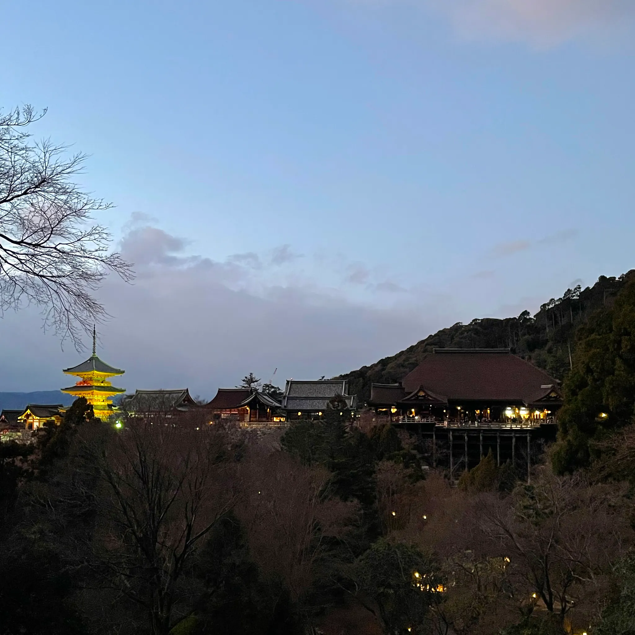 밤에 보는 청수사. 겨울이라 해가 짧은 게 너무 아쉬웠다