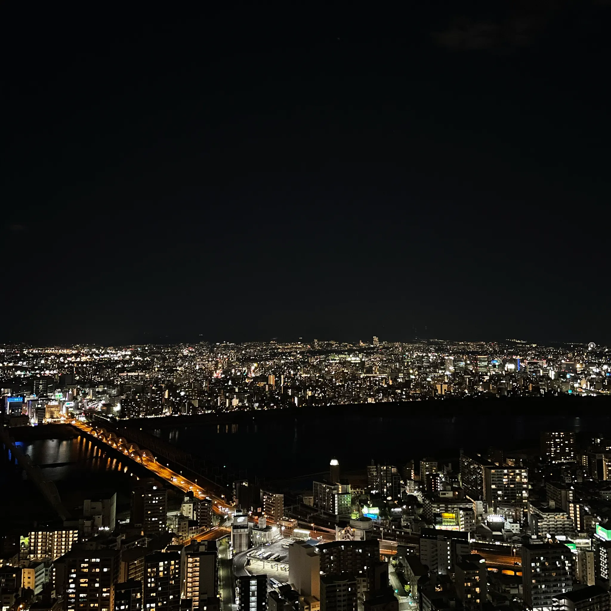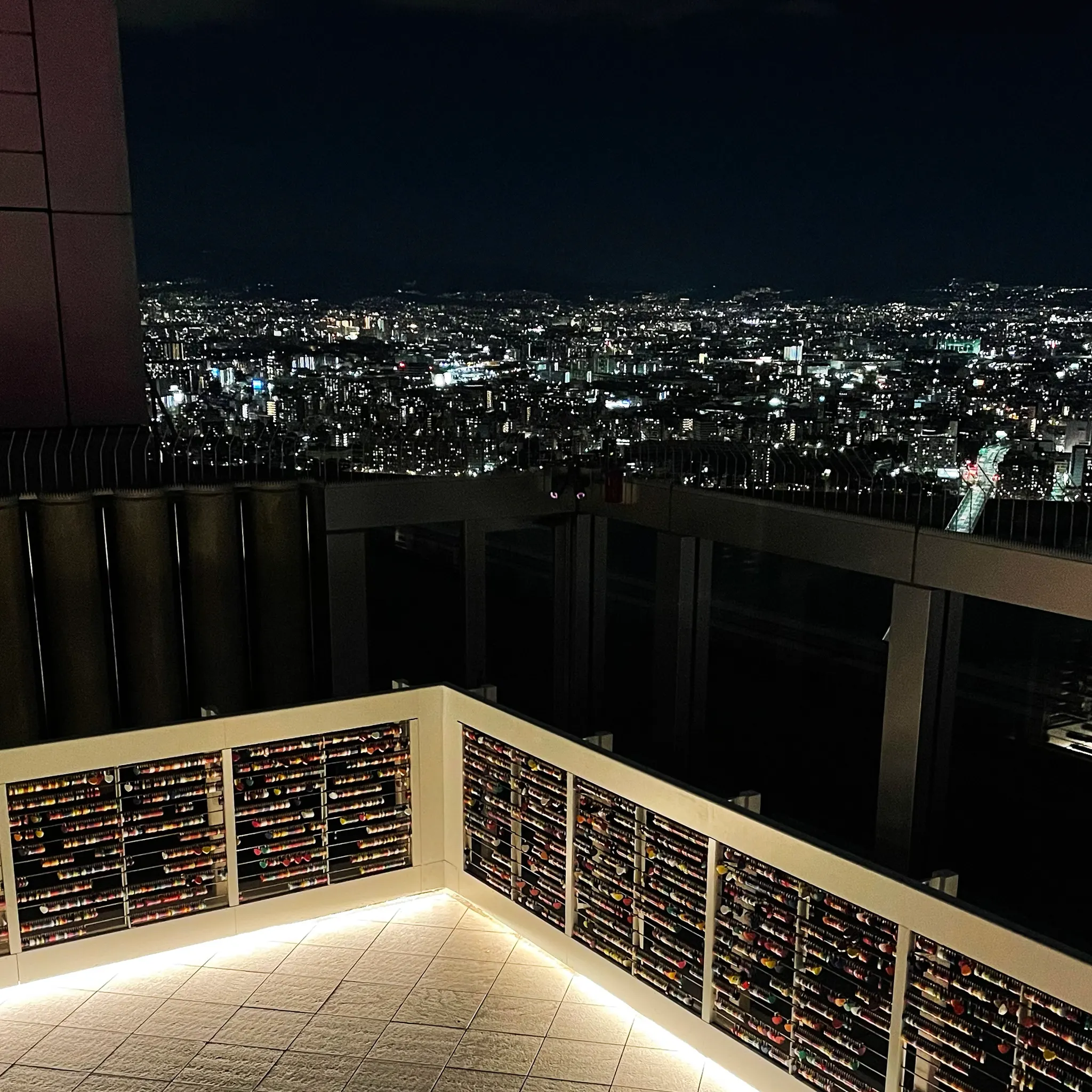 이렇게 오사카 야경이 한 눈에 내려다보인다. 사방이 뻥 뚫려있어 밤 바람이 쌀쌀하긴 했지만, 눈 앞에 펼쳐진 너무 예쁜 야경에 한참을 구경한 우리. 정말 너무 예뻤다. 오사카에서 꼭 한 번 가볼만한 곳!
