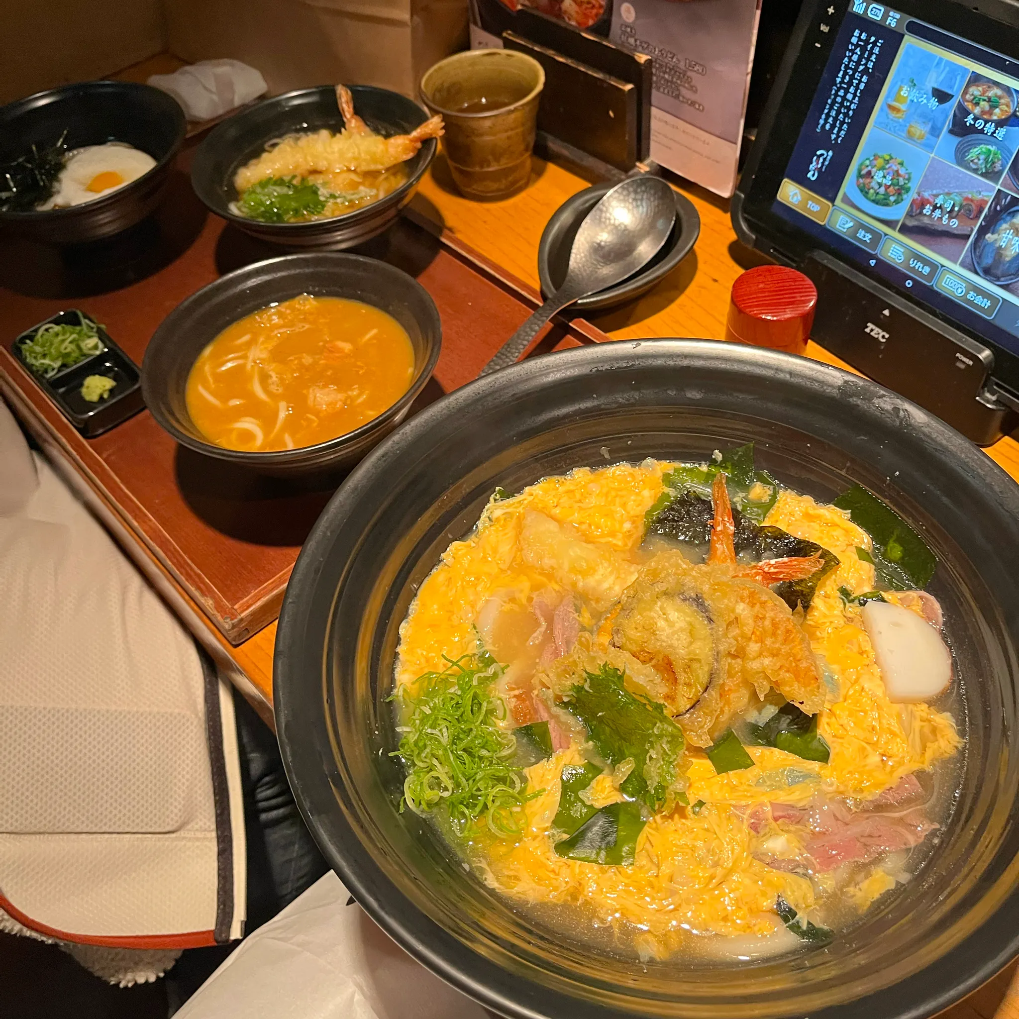 오늘의 마지막 일정은 조금 늦은 저녁식사로. 교토에서 먹었던 우동이 아쉬워서 이번에는 오사카 맛집, 우동 맛집으로 검색해서 찾아갔다. 오사카 찐맛집이라는 츠루통탄 소에몬쵸점. 테이블마다 비치된 태블릿으로 주문하는 방식이었는데 한국어 없으니 주의!