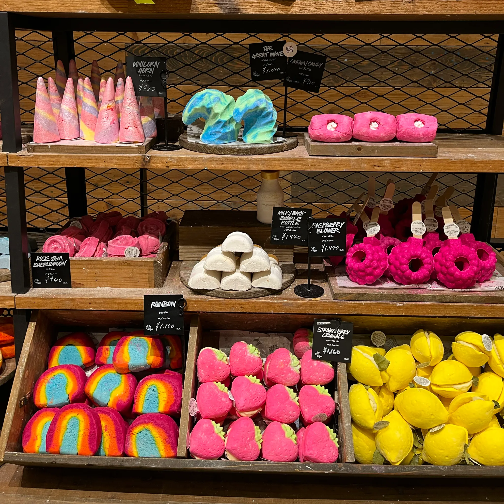 내 마음을 사로잡은 색깔색깔 배쓰밤들. 파워 내향형인 우리는 러쉬 우리나라처럼 직원분들이 인싸들이면 어쩌지? 고민했으나 그렇지 않았다고 한다ㅎ