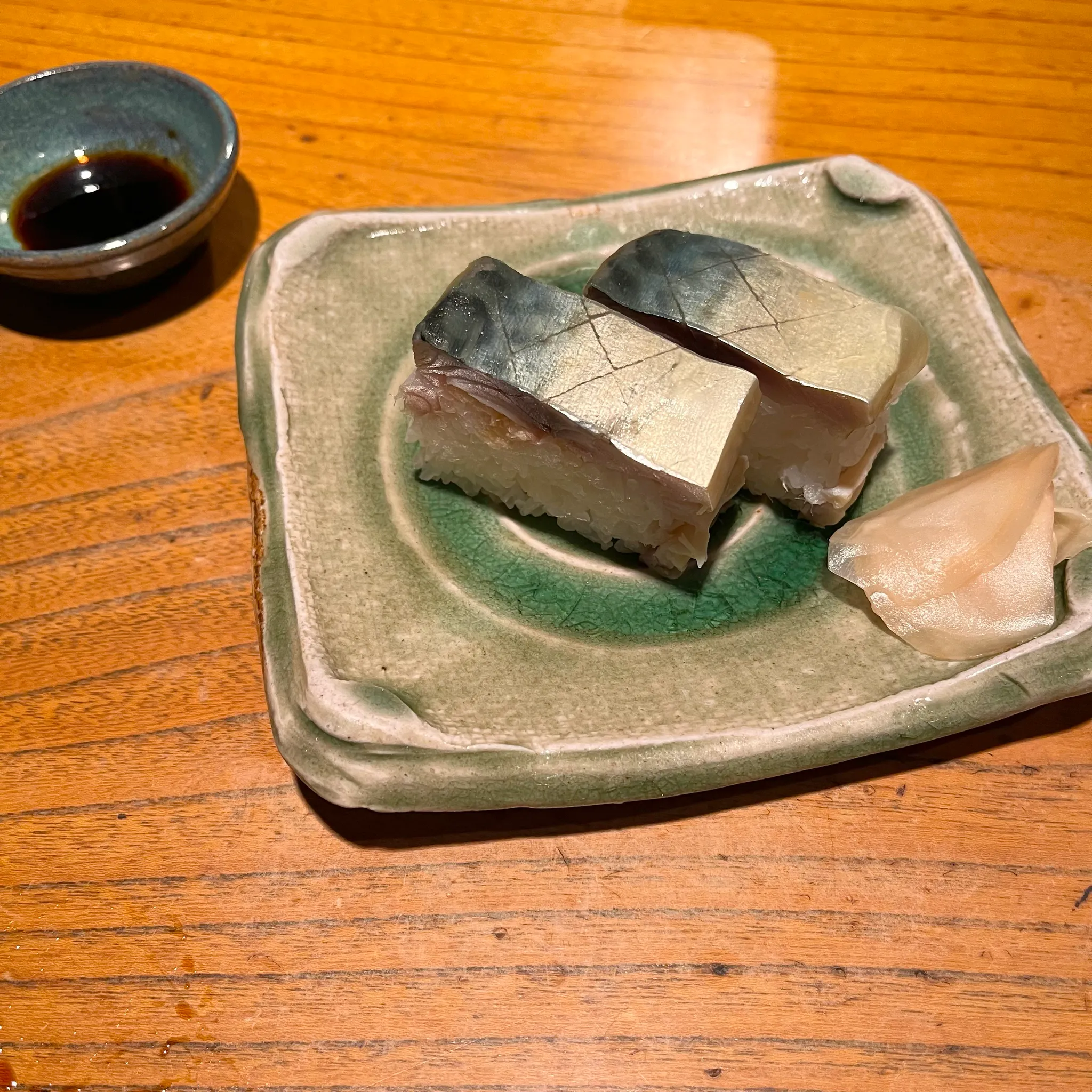 우리가 주문한 건 고등어 초밥 두 개와,