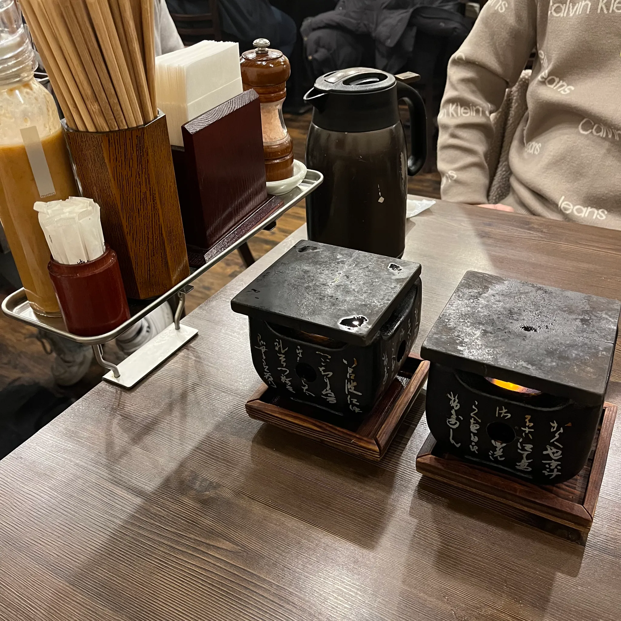 드디어 앉은 자리🥹 앞의 미니 화로에 불을 켜준다.