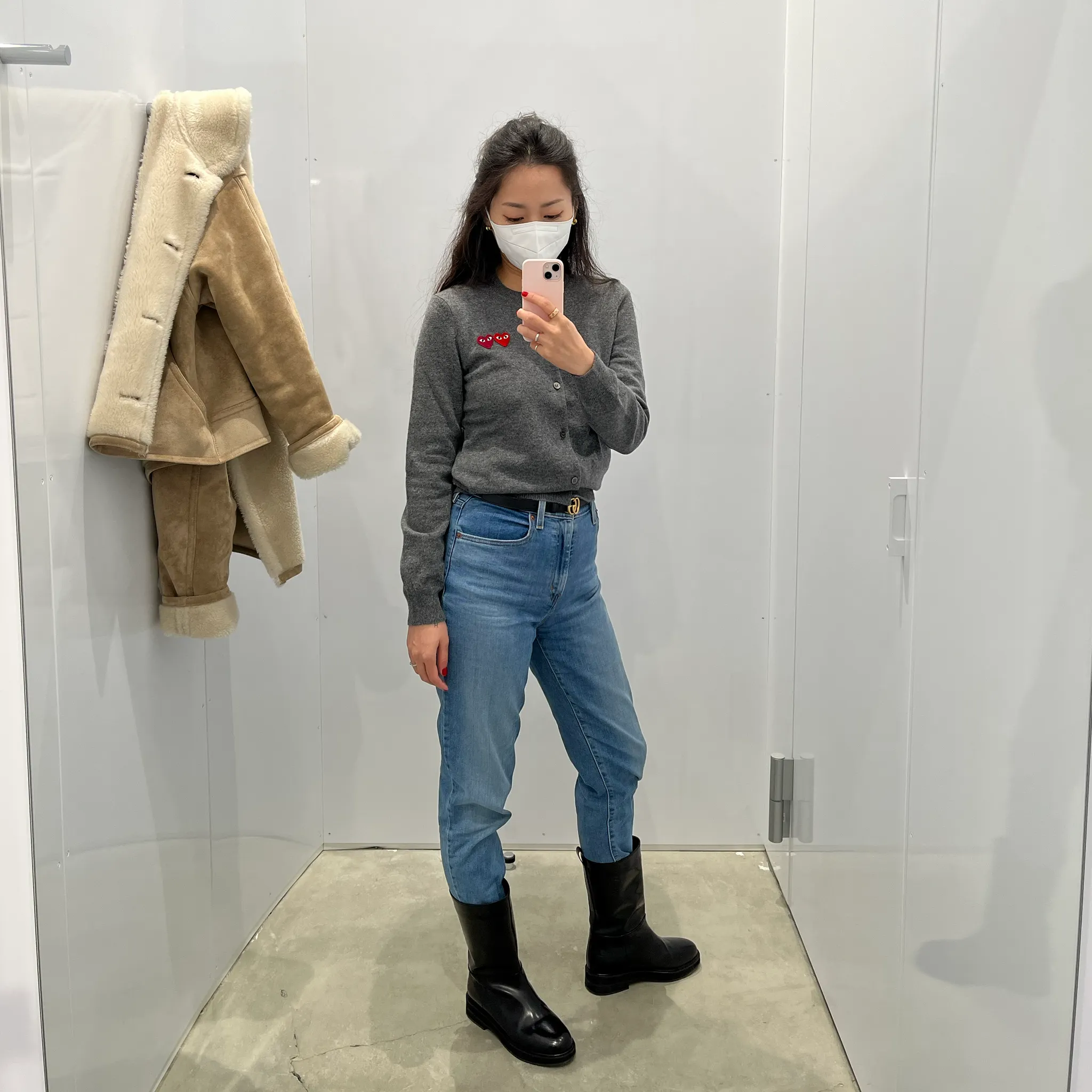 근데 짝꿍이 하트 두개가 훨씬 예쁘다고 해서 뜻밖의 만족! 히히 한국에서는 40만원 초중반인 가디건이 여기에서는 25,300엔. 심지어 엔저라 더 이득!