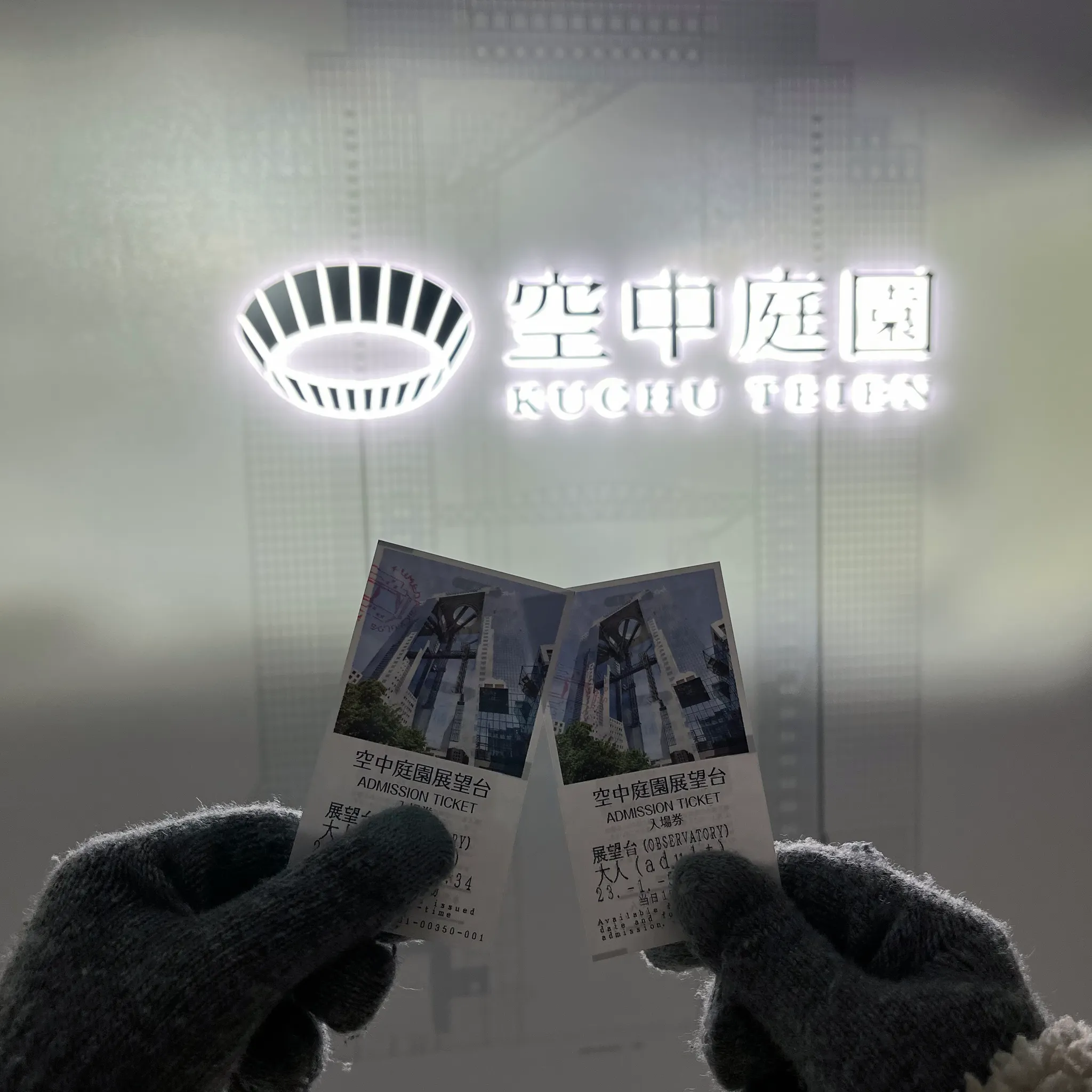 그리고 가이유칸에 이어 오늘의 두 번째 메인, 우메다 스카이빌딩. 우메다 공중정원으로 유명한 오사카 야경 관람 스팟이다. 높은 건물 두 개가 이어진 맨 위 쪽에 있는 우메다 공중정원. 엘리베이터를 타고 39층 매표소로 갔다. 올라가는데만 40초 정도 걸림.