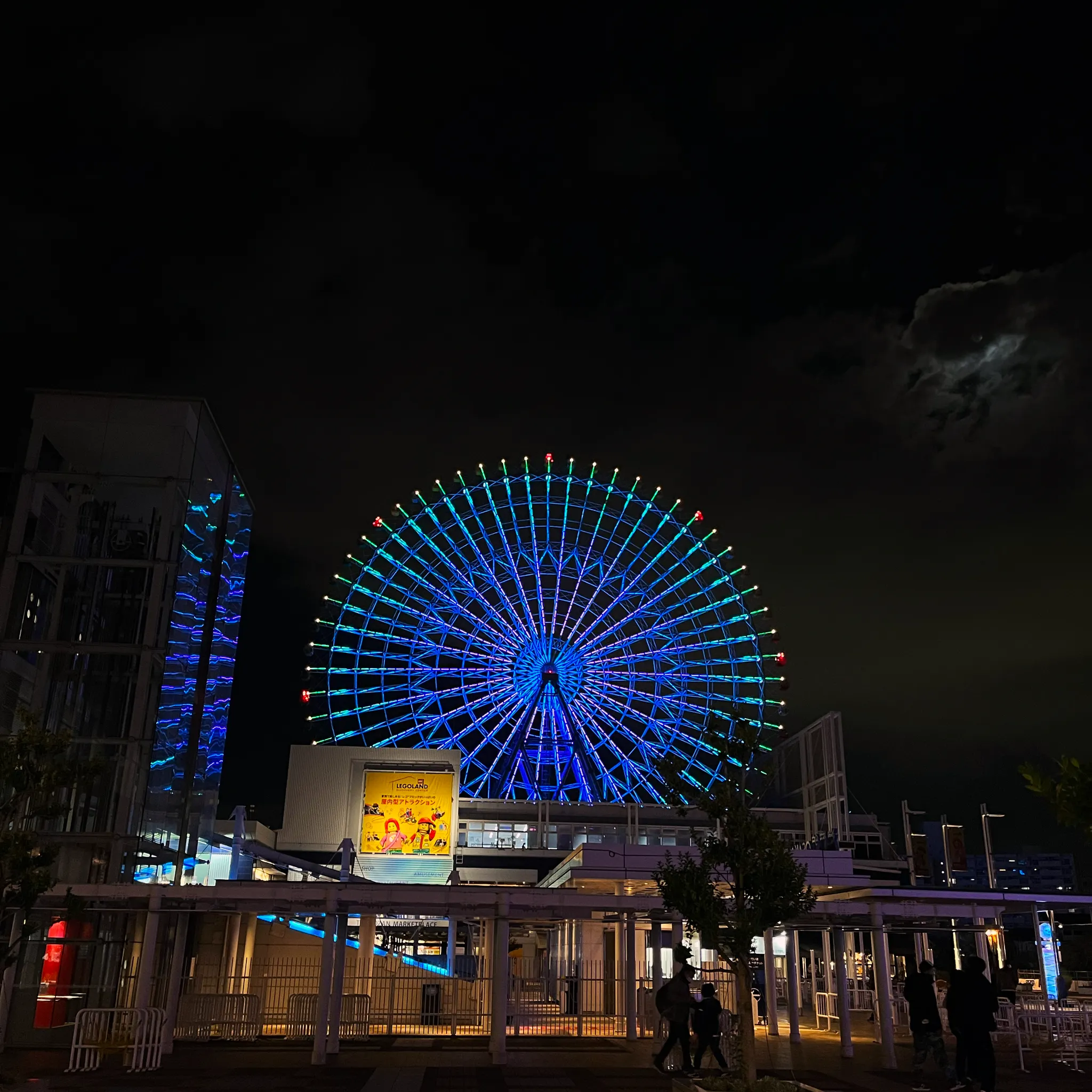 밤의 대포잔 대관람차는 이렇게 색색으로 빛나면서 글자나 캐릭터가 지나다니기도 했다. 알록달록 예뻐서 한참 구경함ㅎㅎㅎ