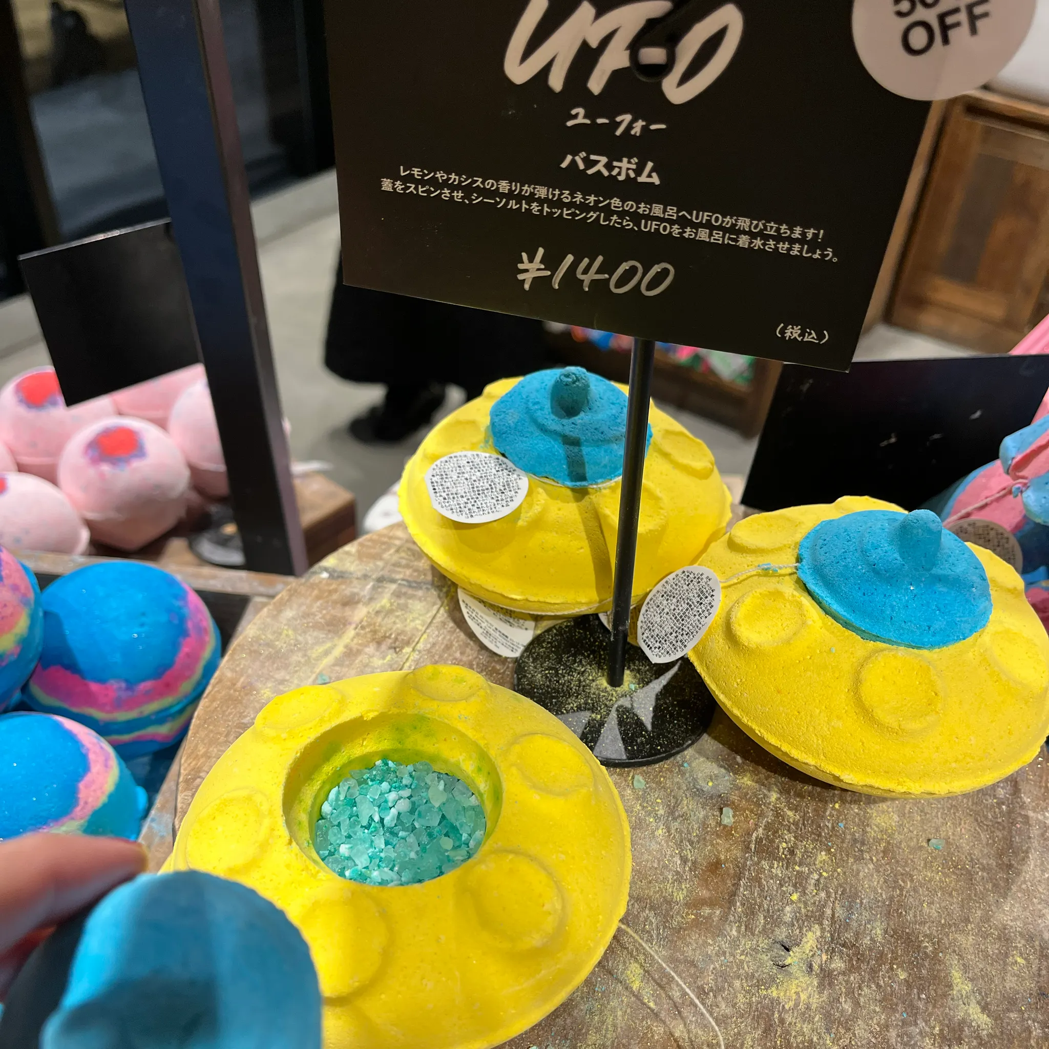 저 UFO 배쓰밤은 뚜껑 열면 배쓰솔트들이 들어있다. 너무 귀엽잖아! 🥹