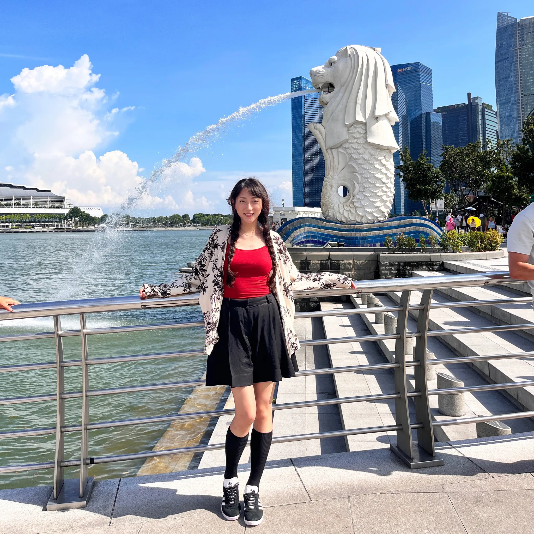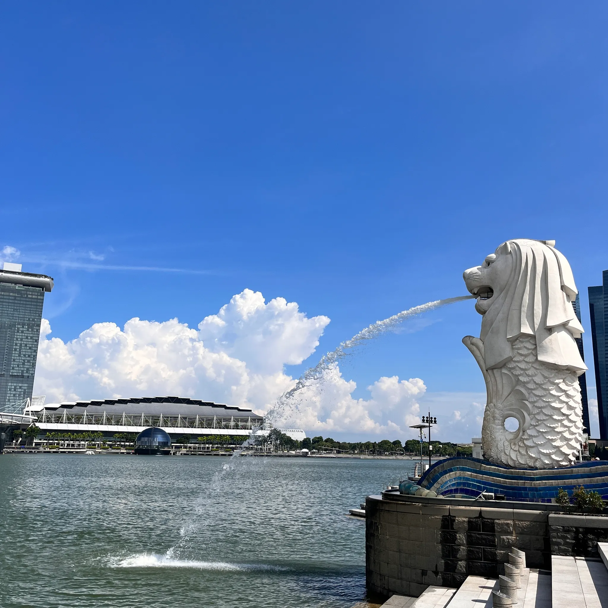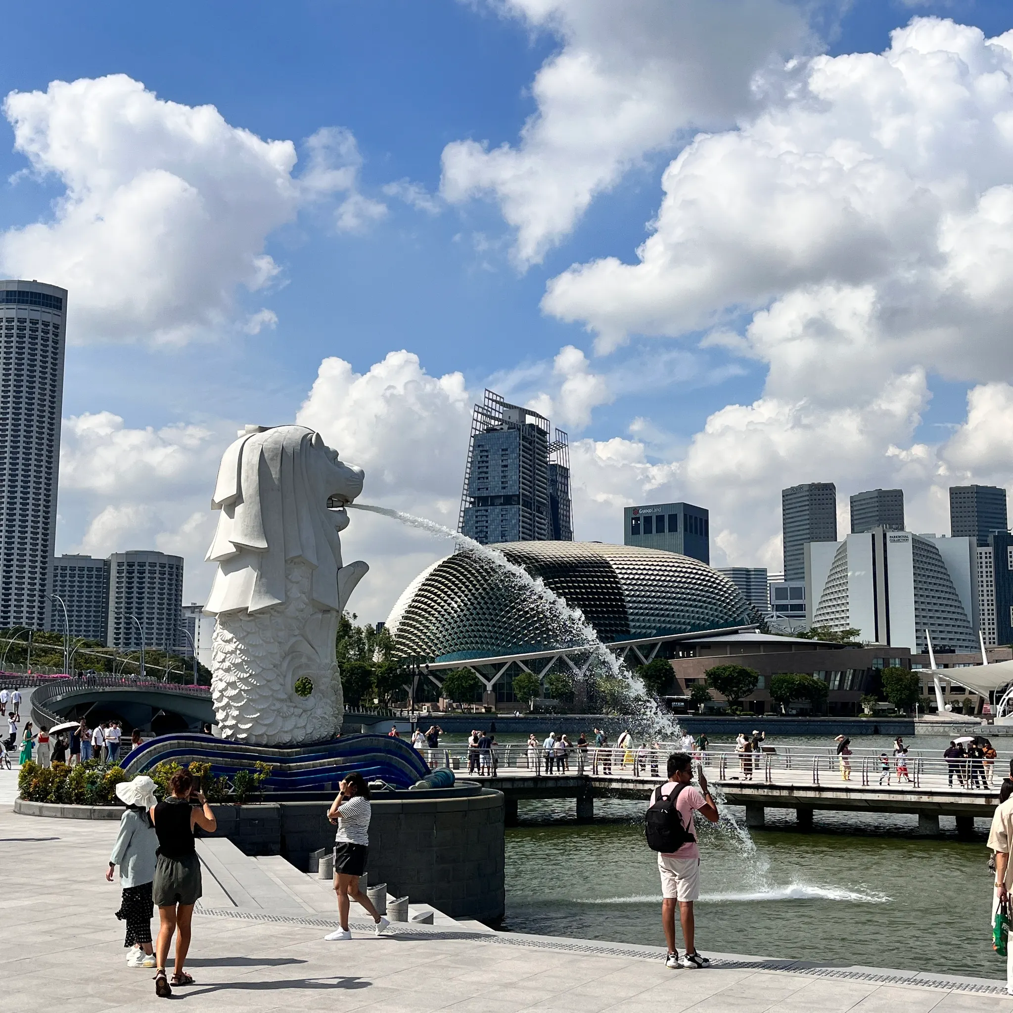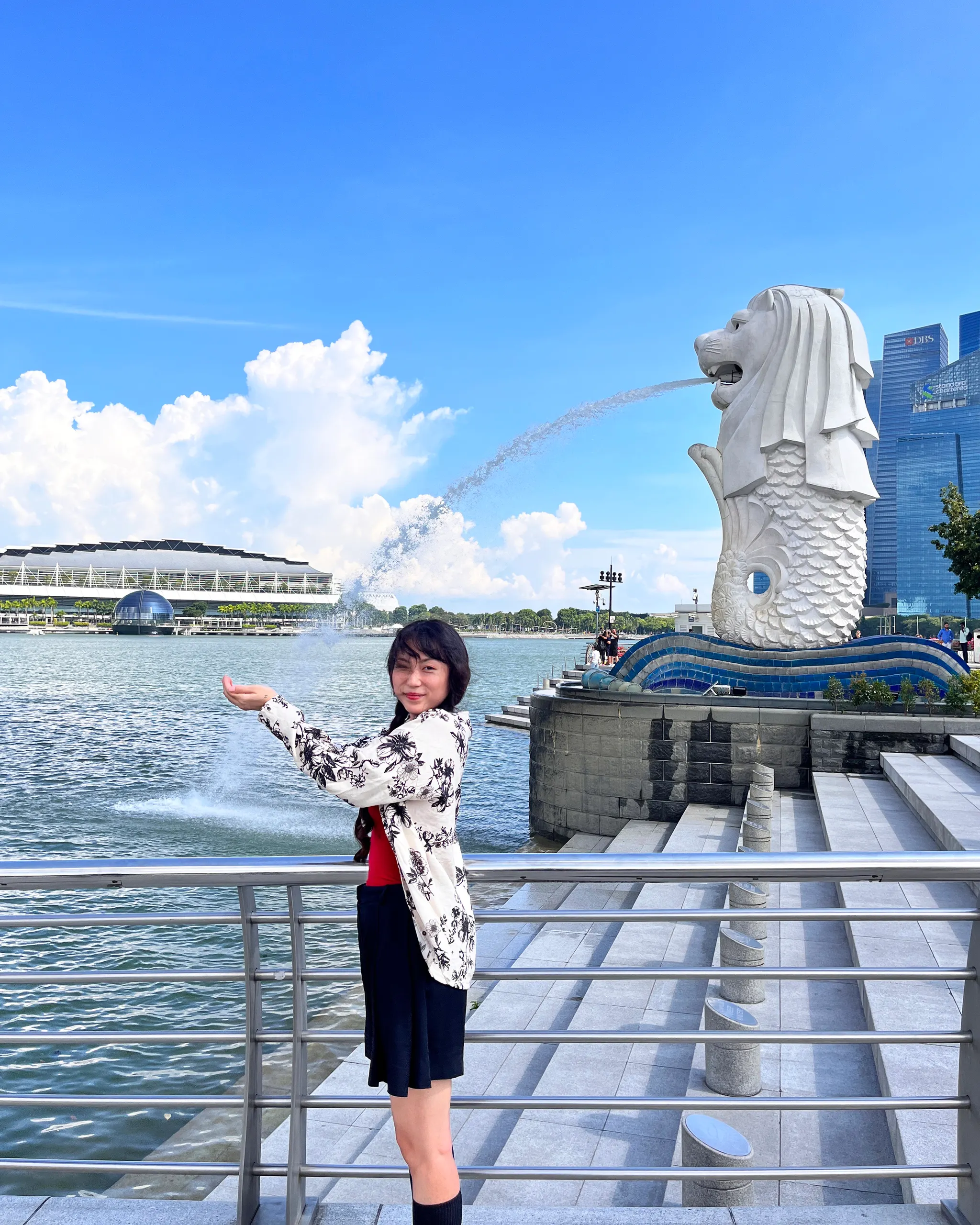 아무래도 가장 유명한 머라이언상이다보니 다들 각자의 포즈로 다양하게 사진을 찍고 있었는데, 질 수 없었던(?) 나는 이렇게도 찍어보고, 물 마시기도 해보고