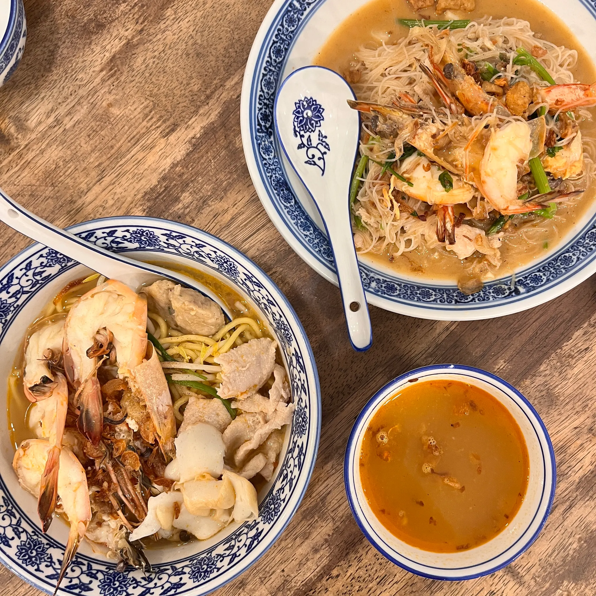왼쪽 아래가 새우국수, 오른쪽 위가 새우볶음면이다. 하.. 이거 진짜.. 너무 맛있게 먹었음.. 살짝 이국적인 향신료가 들어있긴 하지만 괜찮았던 정도! 우리나라 새우탕면에 이국적인 향 들어간 그런 느낌이랄까..? 나는 새우국수보다는 새우볶음면이 더 좋았다. 향이 덜 나기도하고 더 얇은 저 면이 완전 취향이었음 싱가폴 맛집 추천하면 무조건 추천할 곳!